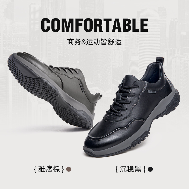 骆驼2025冬季男鞋透气新款跑步鞋真皮商务男士皮鞋潮流运动休闲鞋