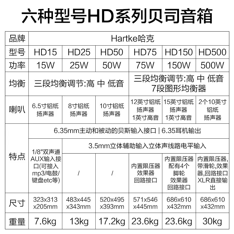 Hartke哈克HD15HD25HD50贝斯音箱家用练习排练演出音响电bass音箱