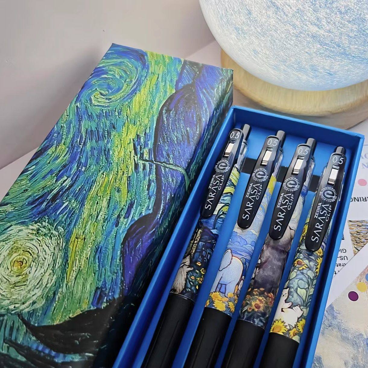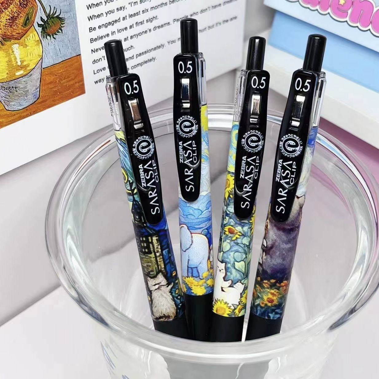 斑马ZEBRA第二代梵高限定笔DIY贴纸中性笔JJ15礼盒装速干黑色笔芯