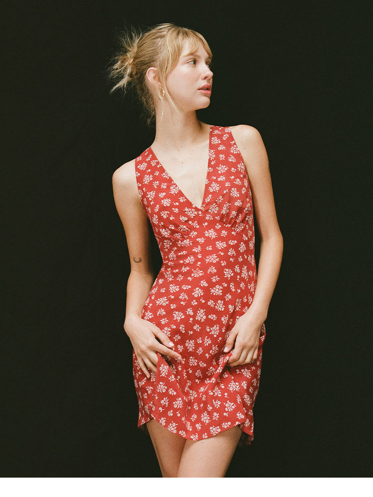 Realisatio* 法式复古连衣裙系带小红裙V领碎花短裙2025夏季新款