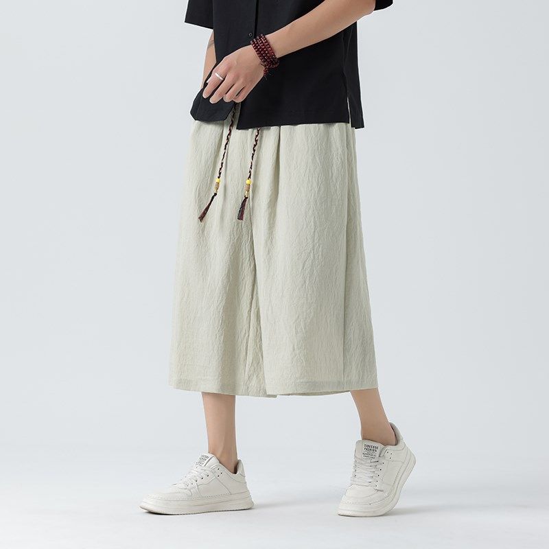 亚麻七分裤男中国风夏季薄款棉麻直筒中裤宽松阔腿裤大码休闲短裤