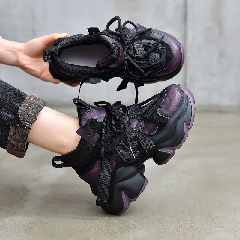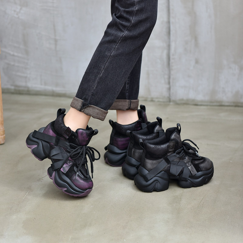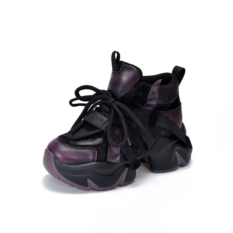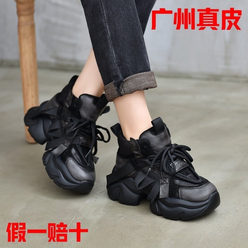 JWNM秋冬新款羊毛老爹鞋女松糕厚底复古真皮增高高帮休闲运动女鞋