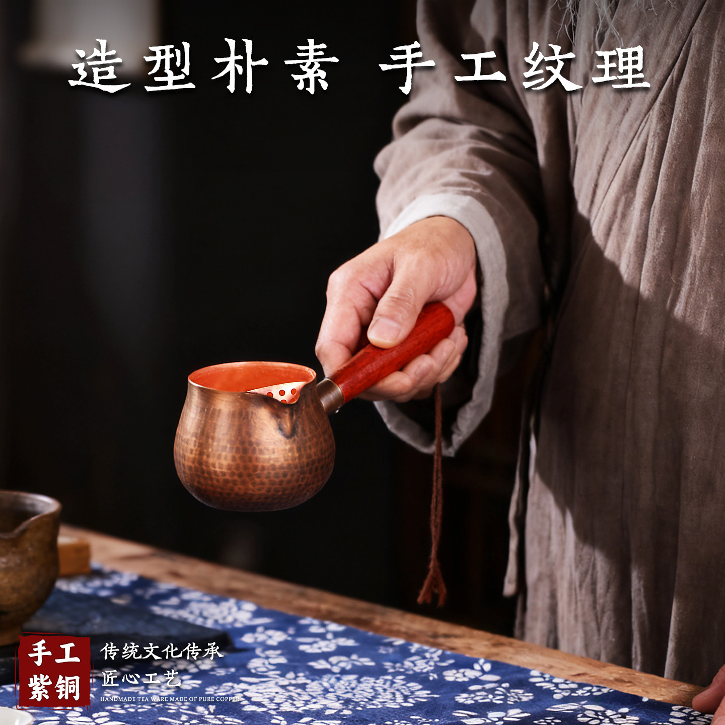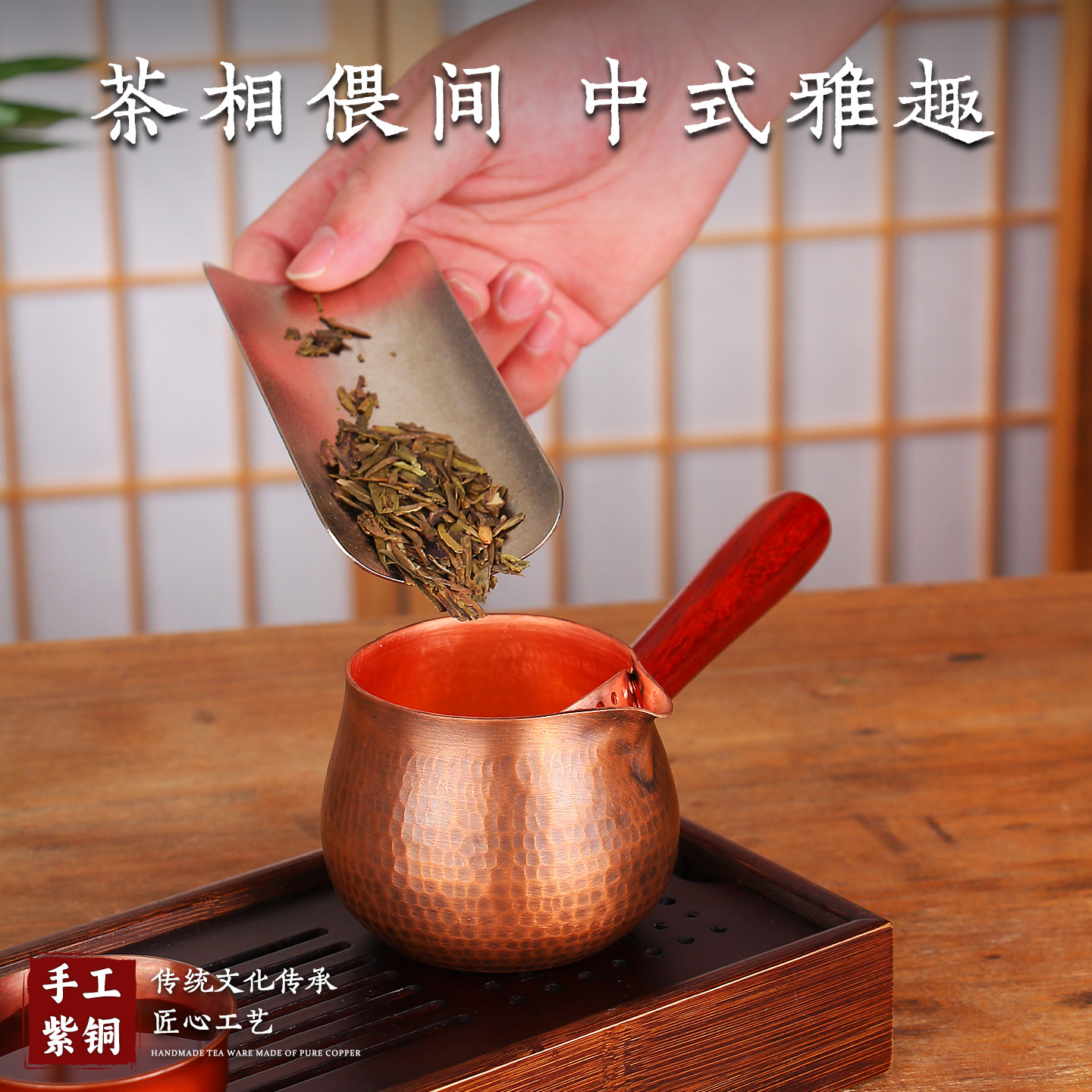纯紫铜烤茶罐公道杯侧把铜壶铜罐煮茶烧水罐罐茶煮茶器炉围炉煮茶