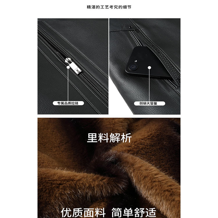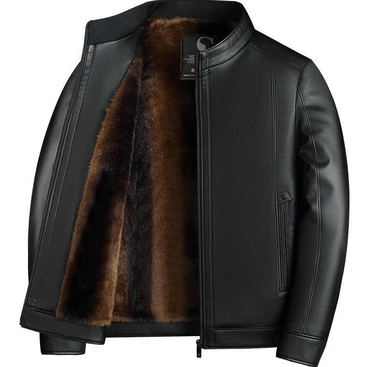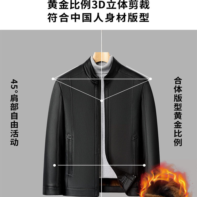 夜鹰保罗中年男士立领皮衣外套25冬季新款加绒加厚爸爸冬装皮夹克