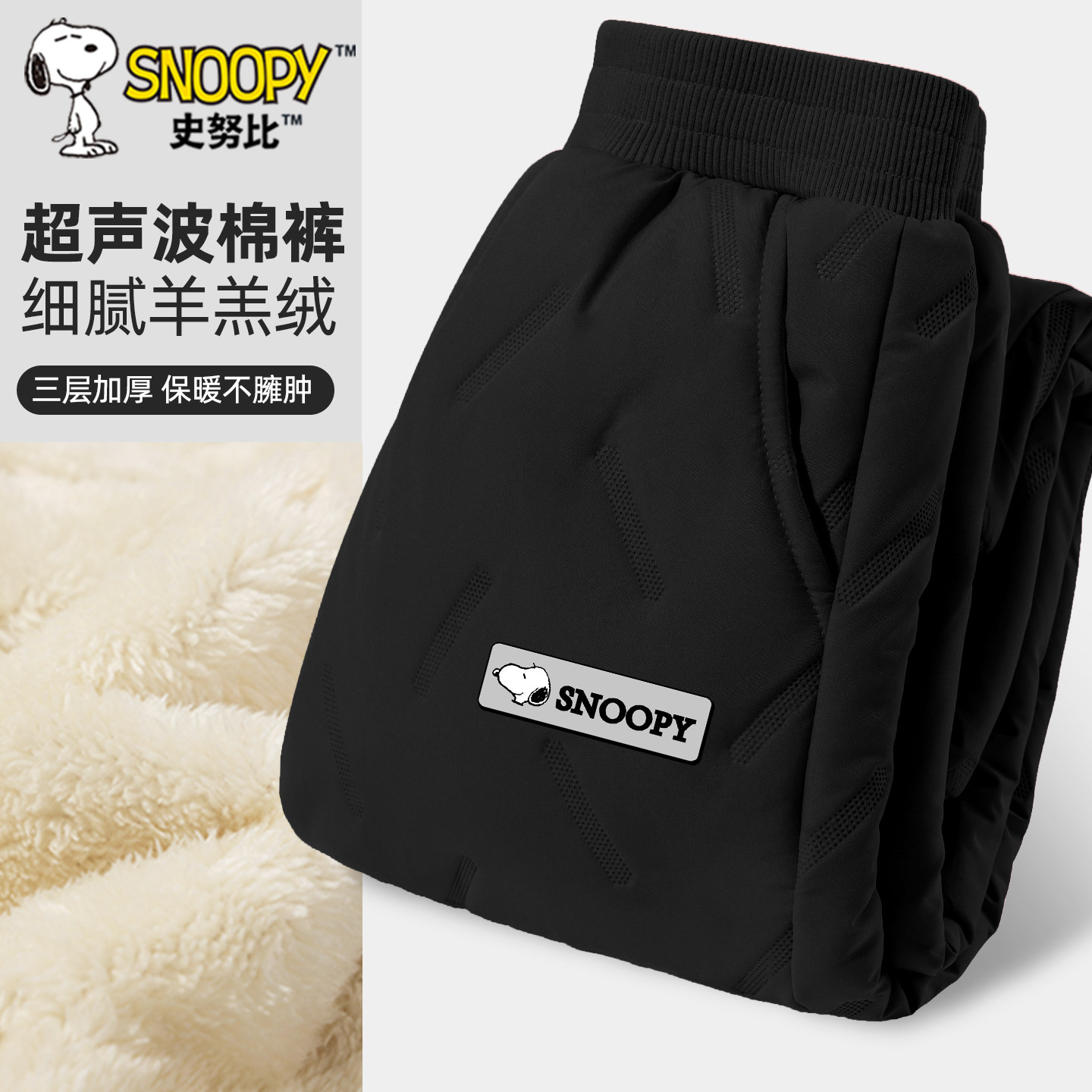 史努比儿童棉裤男童加厚裤子冬季加绒保暖裤外穿男孩羊羔绒裤过冬