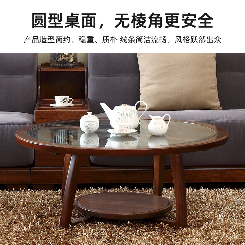 华鹤家具简约客厅实木茶几圆形透明玻璃组合两层多用HT83M圆茶几A