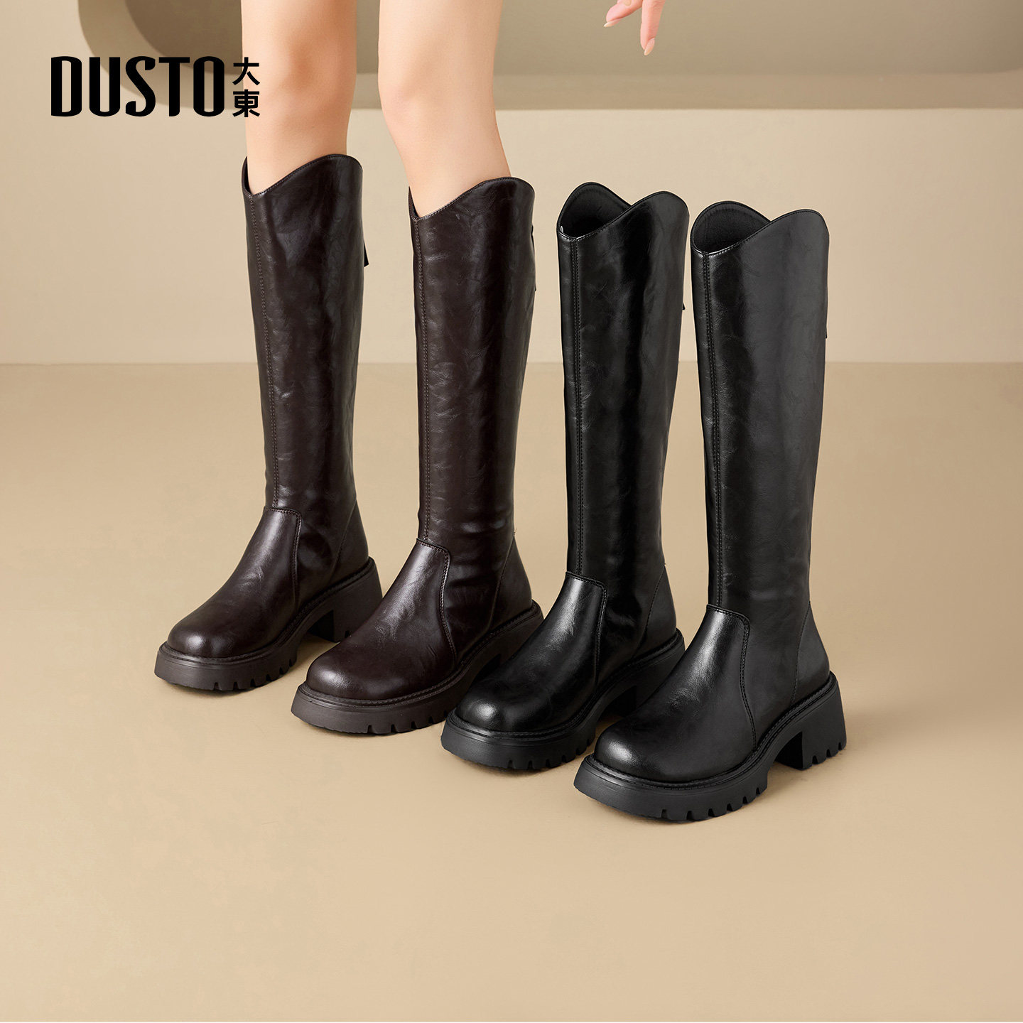 大东dd长筒靴女2025冬季女靴新款美拉德长靴厚底靴子女显瘦骑士靴