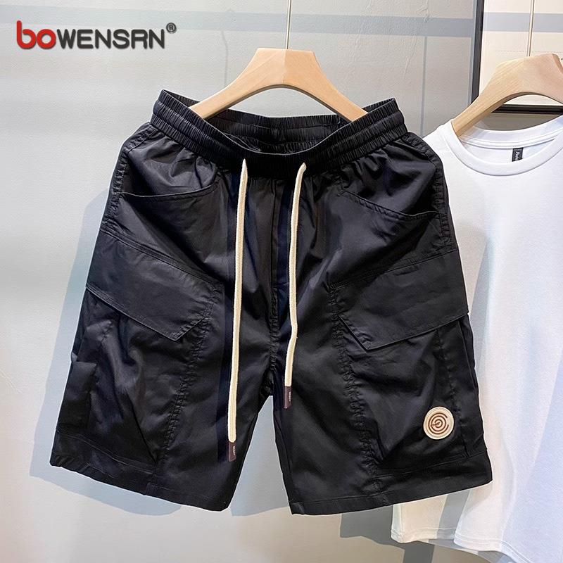 潮牌工装短裤男士2025年夏季新款痞帅松紧腰直筒休闲五分裤子男款