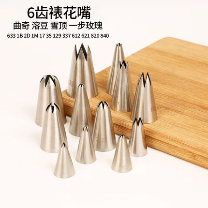 不锈钢6齿裱花嘴小号贝壳一步玫瑰蛋白糖雪顶大号奶油嘴烘焙