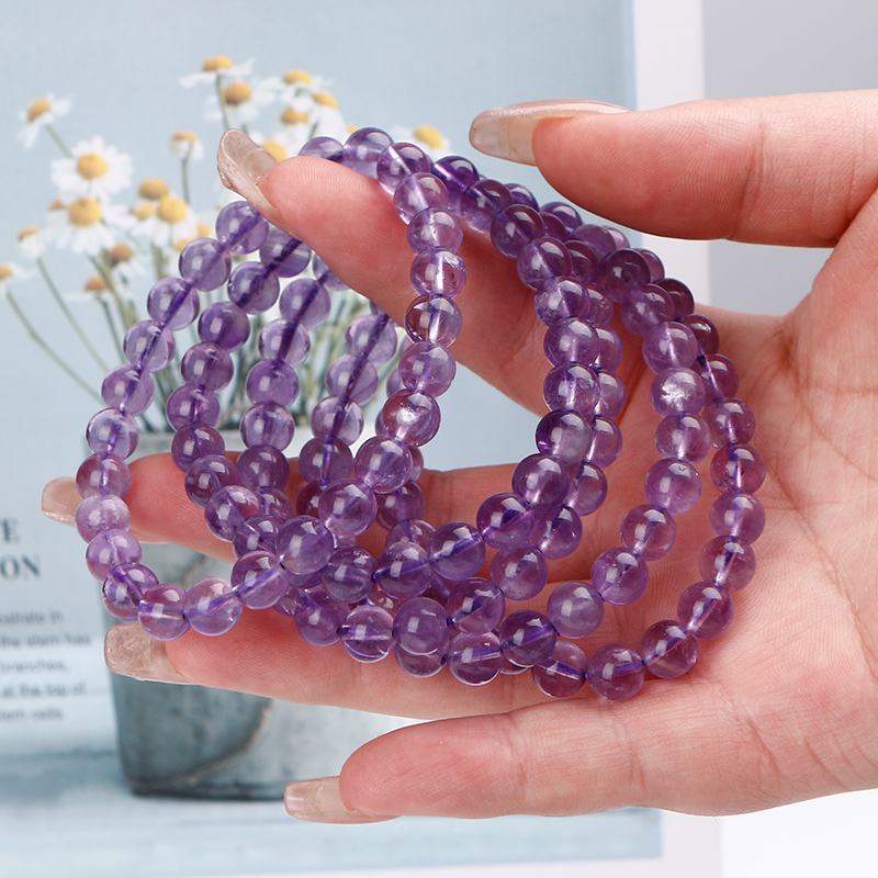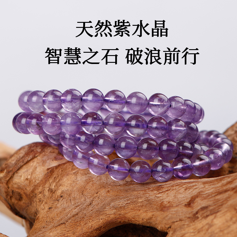 奢瑶正品九紫离火天然巴西紫水晶手串紫色圆珠手链DIY珠子转运礼