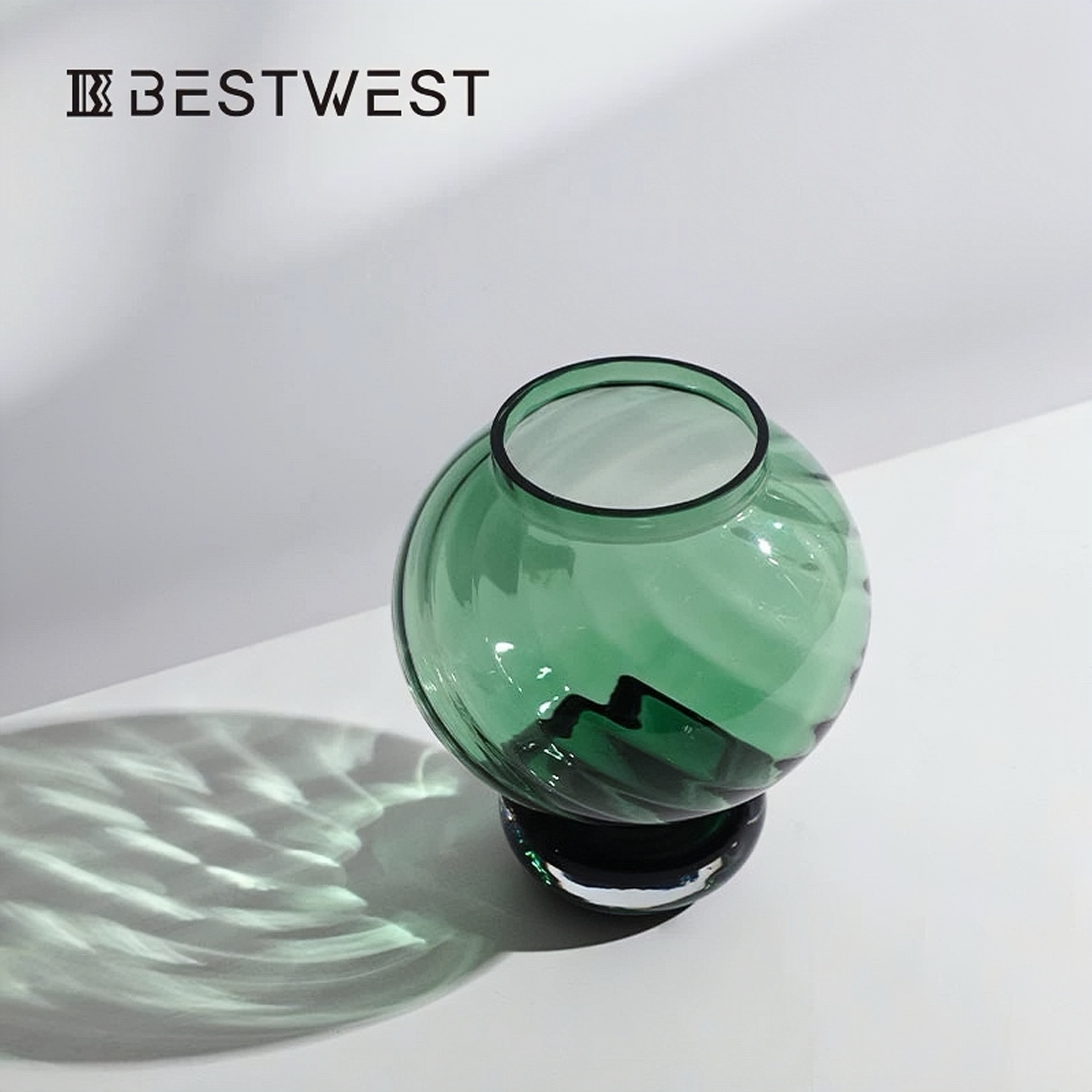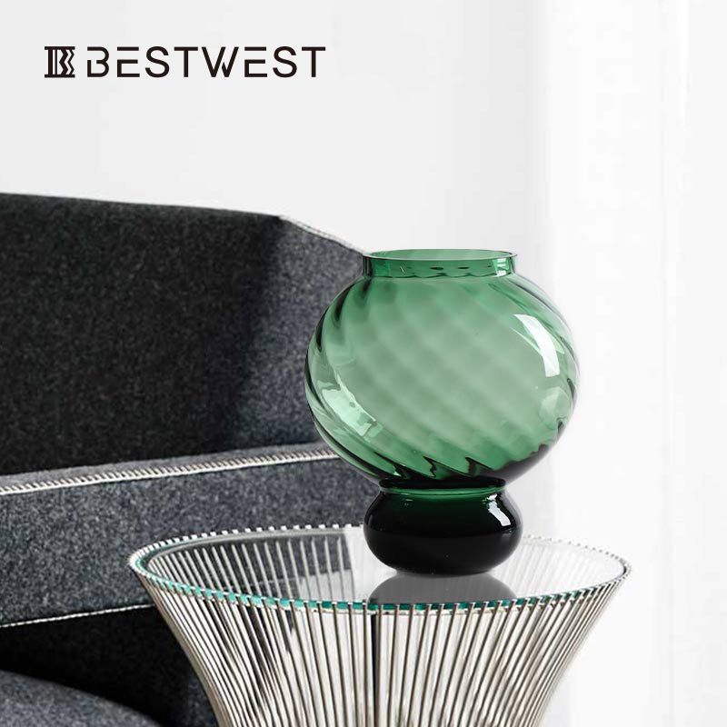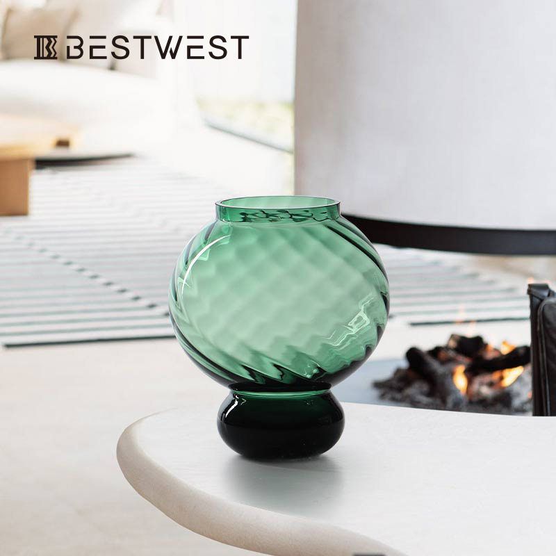 现代简约扭楞玻璃花瓶白色透明鲜花高颜值插花瓶高级感轻奢小摆件