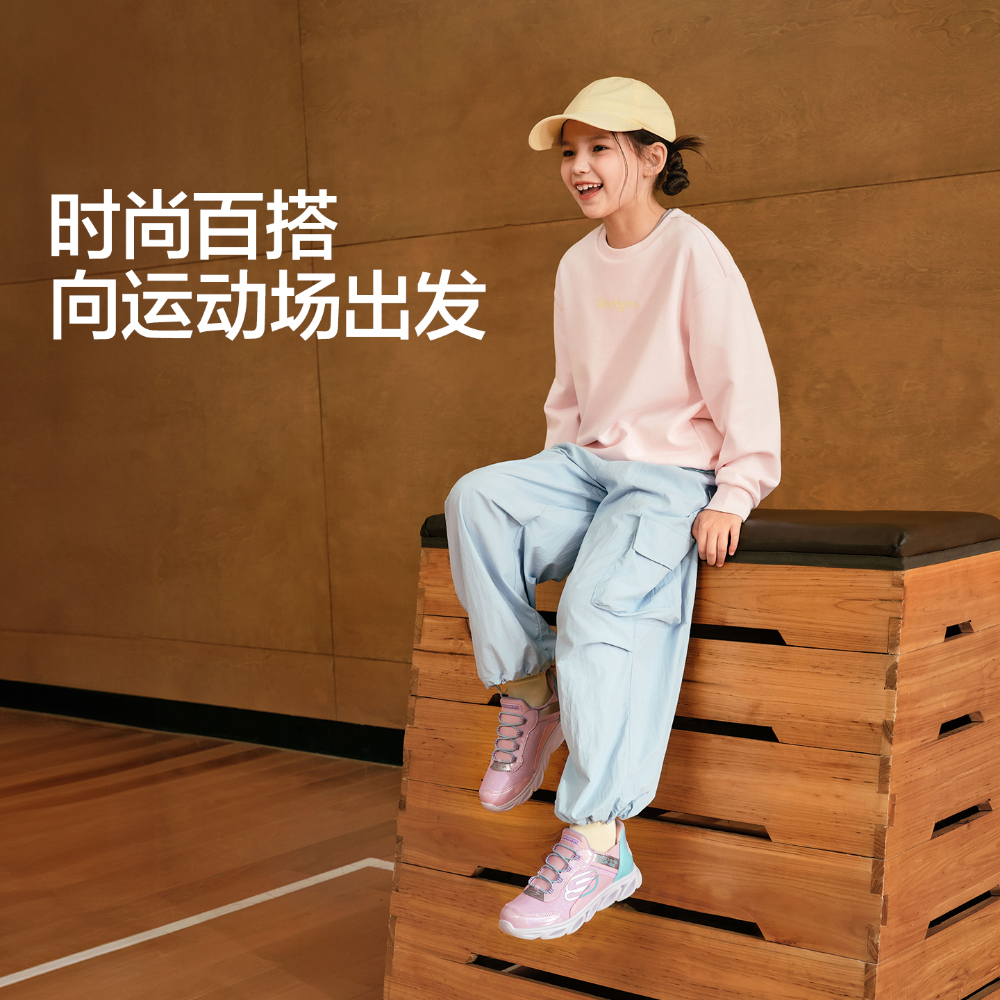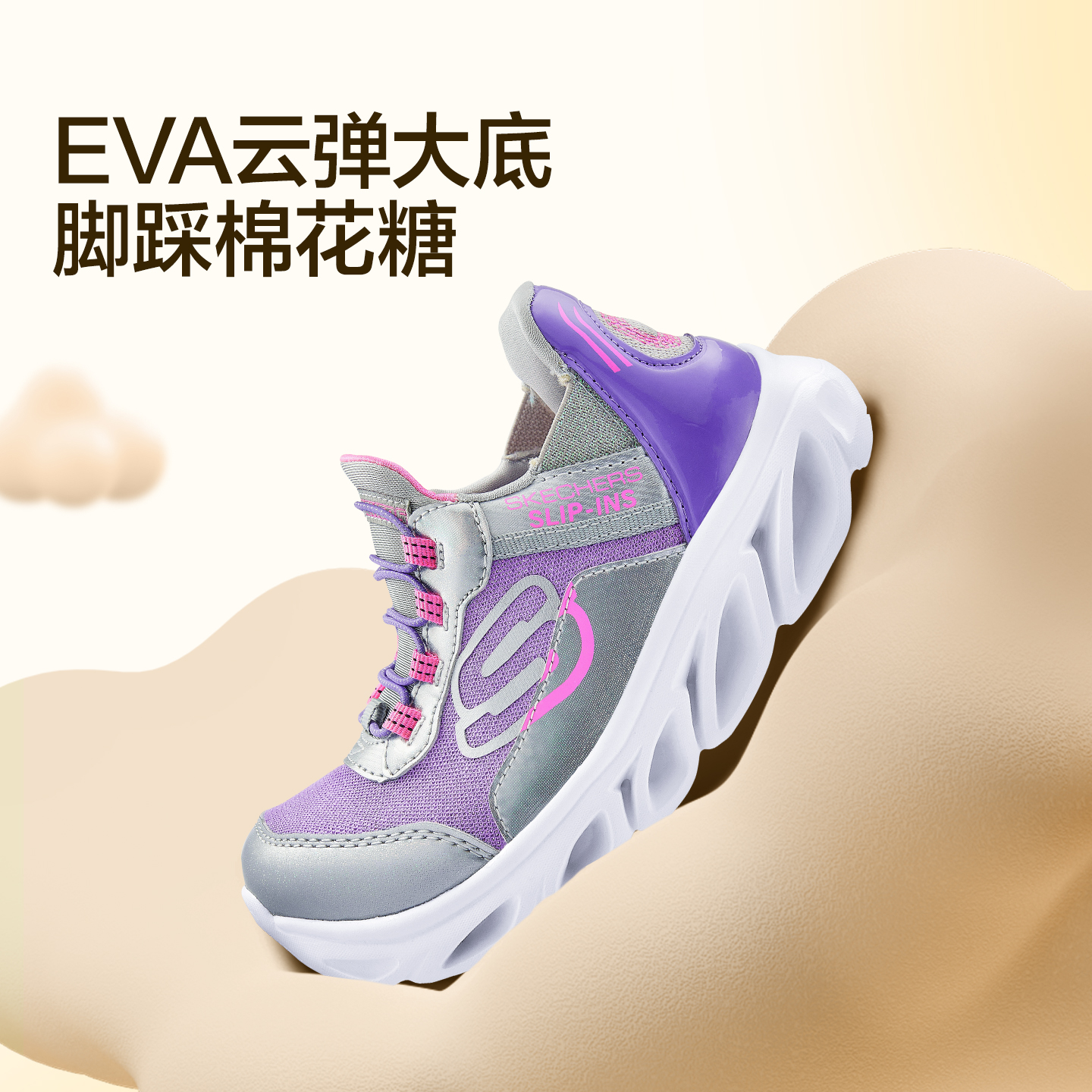 Skechers斯凯奇儿童云感闪穿鞋秋冬女童轻便减震跑鞋一脚蹬运动鞋