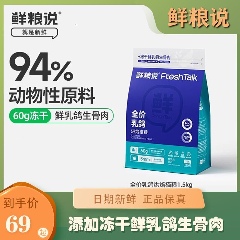 鲜粮说猫粮烘焙猫粮乳鸽烘焙猫粮低温烘焙无谷冻干鲜肉发腮成猫粮