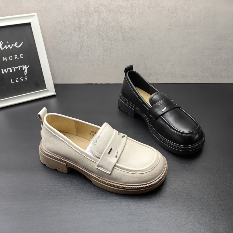 清仓2025春季真皮女鞋休闲韩版低跟方跟圆头乐福鞋皮鞋牛皮女单鞋