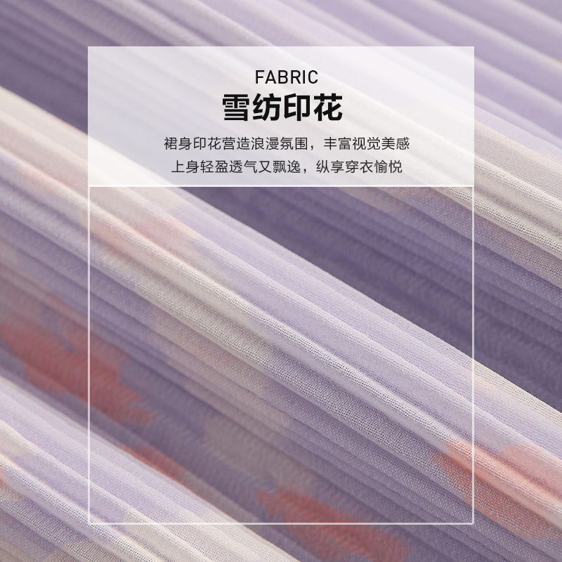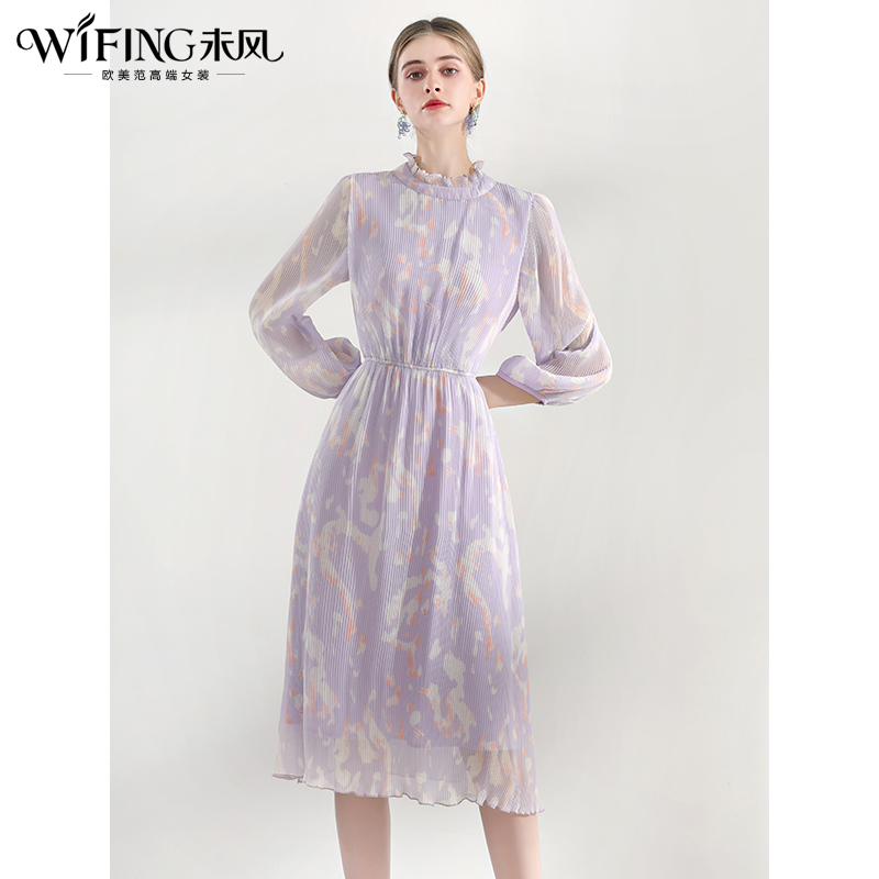 未风紫色雪纺圆领连衣裙女秋2025年秋装新款法式女装长袖减龄裙子