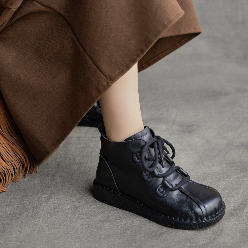 复古拉链短靴女2025秋冬新款软底马丁靴手工真皮高帮鞋系带时装靴