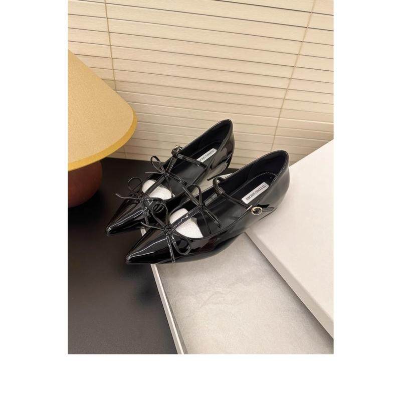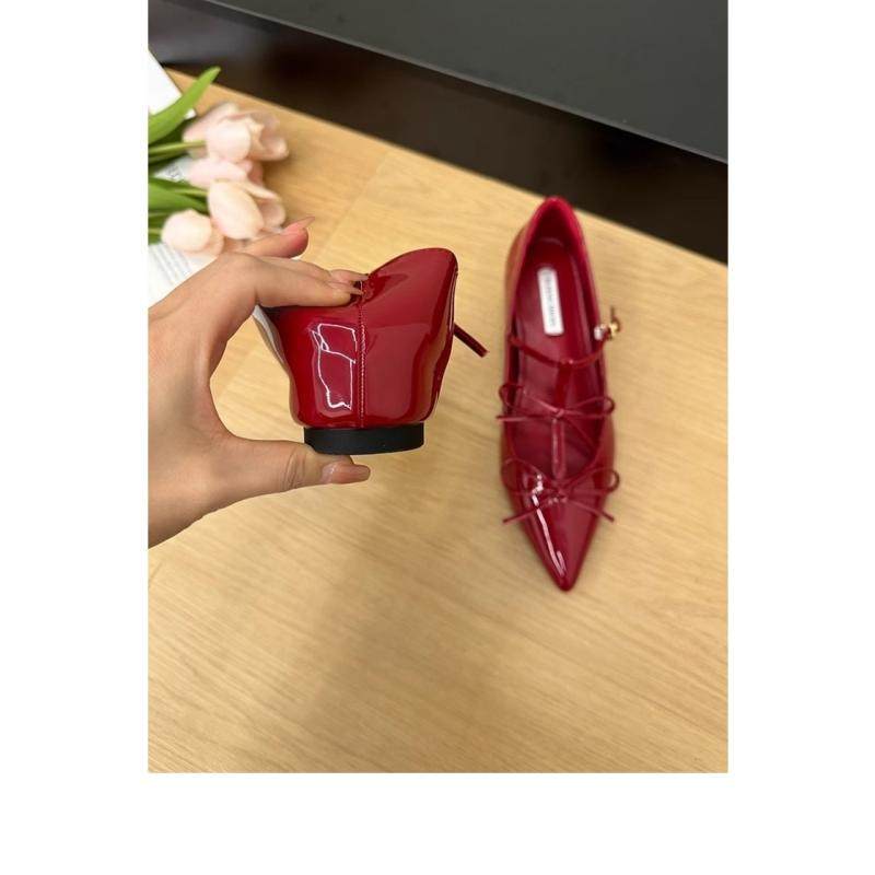 2025新款红色内增高单鞋女一字带蝴蝶结法式尖头浅口玛丽珍平底鞋