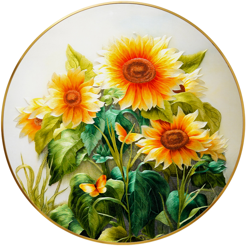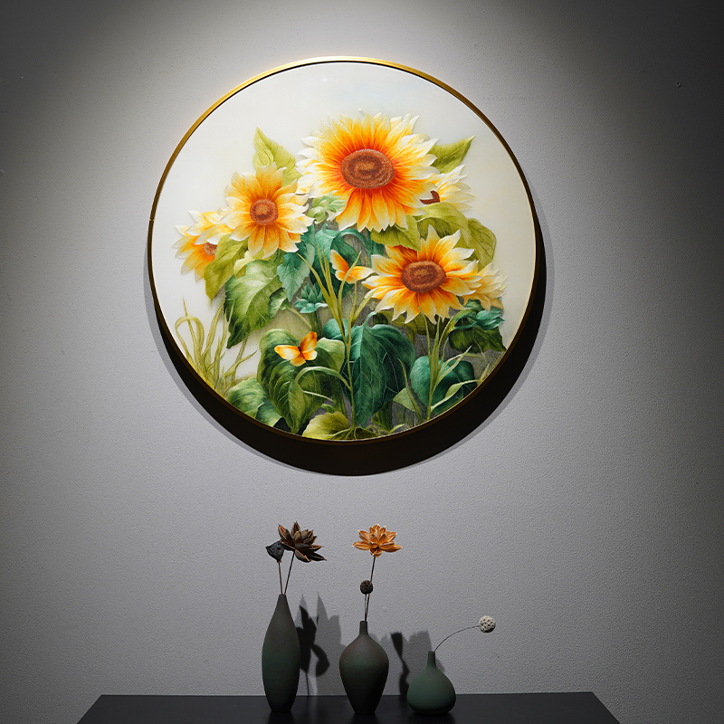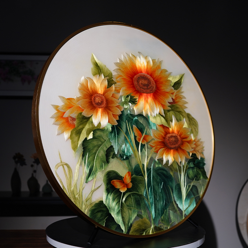客厅玄关装饰画向日葵刺绣装饰画苏州纯手工苏绣中式成品挂画高端