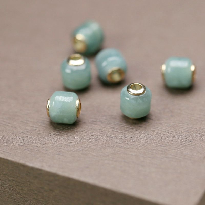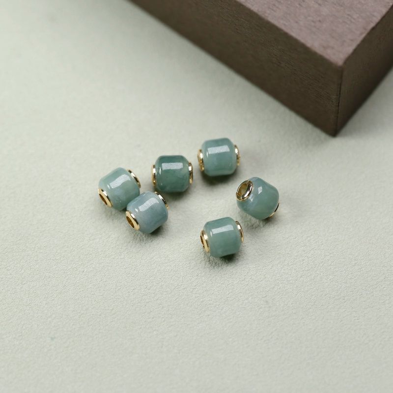 纯天然蓝水翡翠镶嵌通孔桶珠配饰