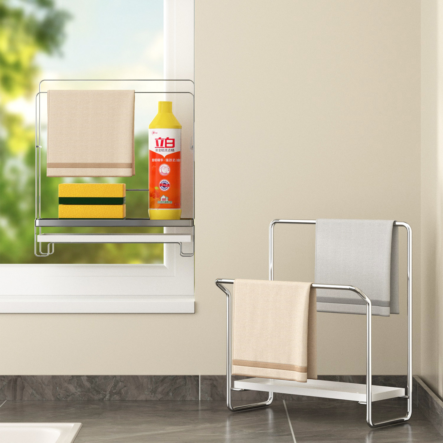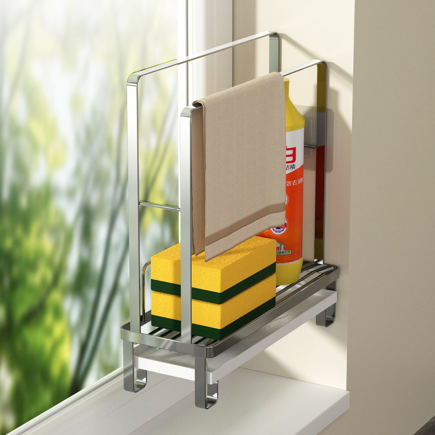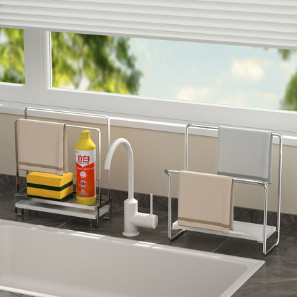厨房抹布架台面置物架洗碗布挂杆壁挂不锈钢沥水架清洁用具收纳架