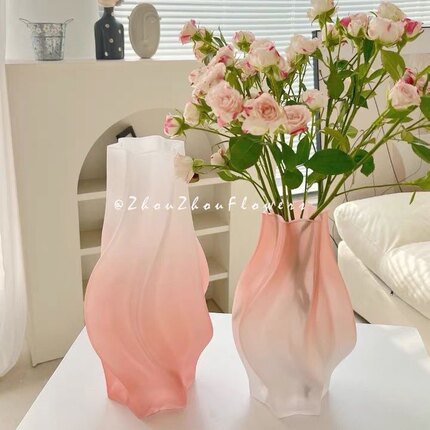 轻奢北欧渐变龙卷风花瓶扭纹磨砂玻璃高贵典雅高颜值插花摆件装饰