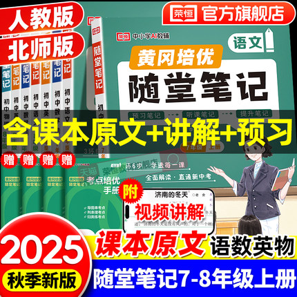 荣恒2025初中随堂笔记七年级上下册课堂笔记黄冈学霸笔记八年级语文数学英语物理初一初二预习人教版北师大版同步教材全解视频精讲