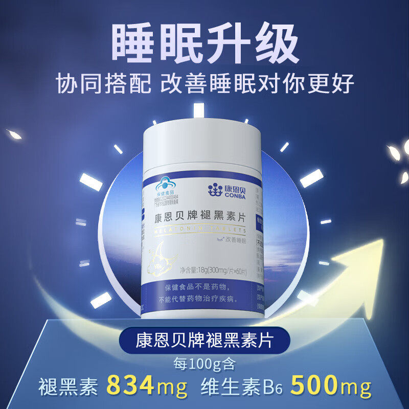 康恩贝褪黑素改善睡眠片保健退黑素官方正品维生素b6片成人非软糖