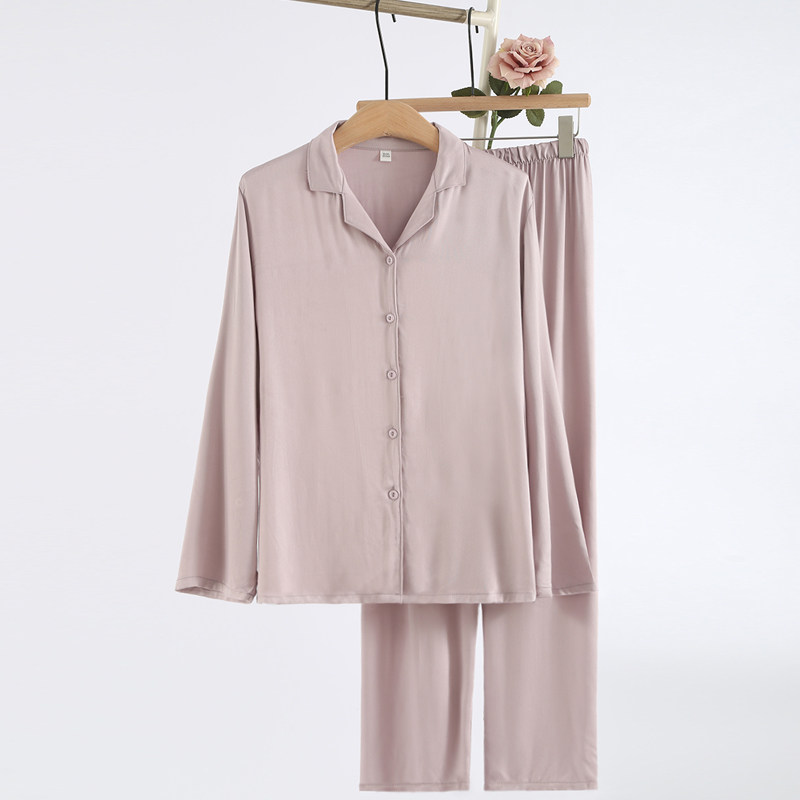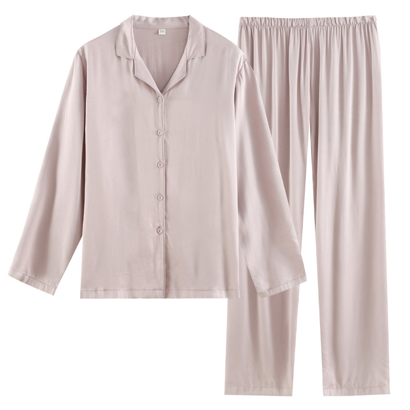 40支人棉贡缎日系睡衣男女春夏季薄款人造棉情侣大码家居服套装