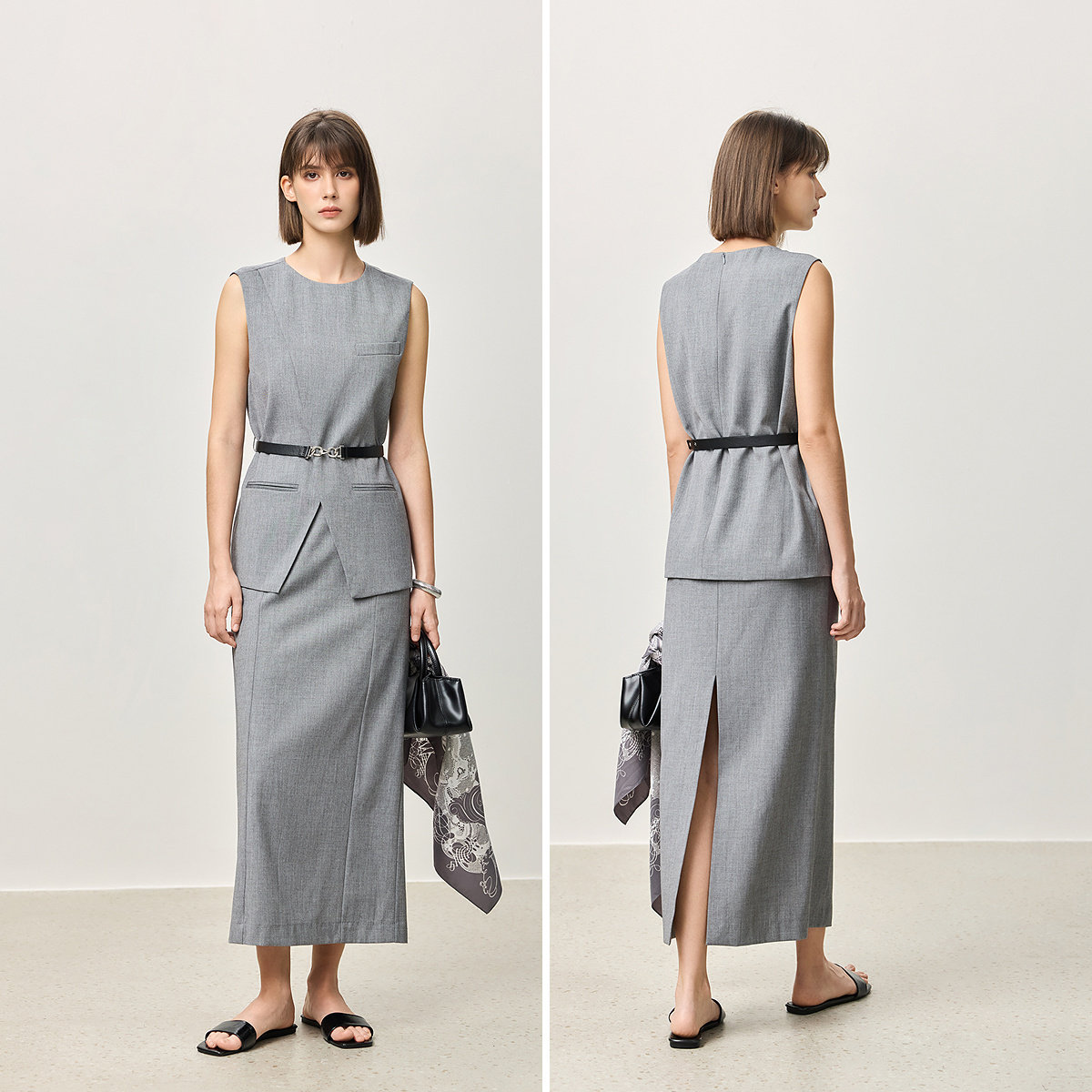 【商场同款】LILY2025春新款女装格雷系通勤圆领背心半身裙套装