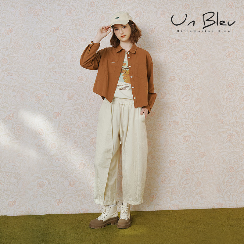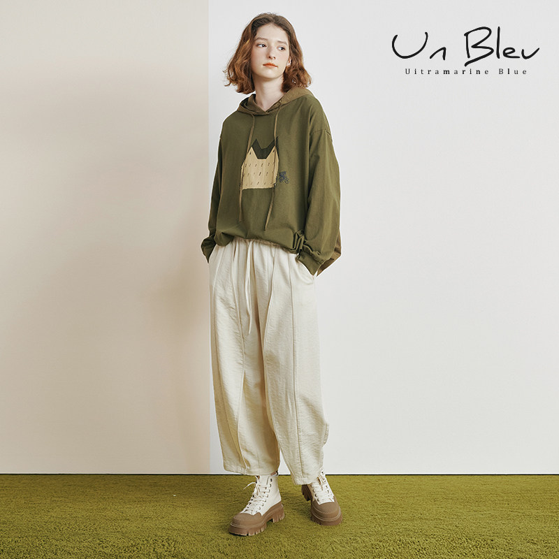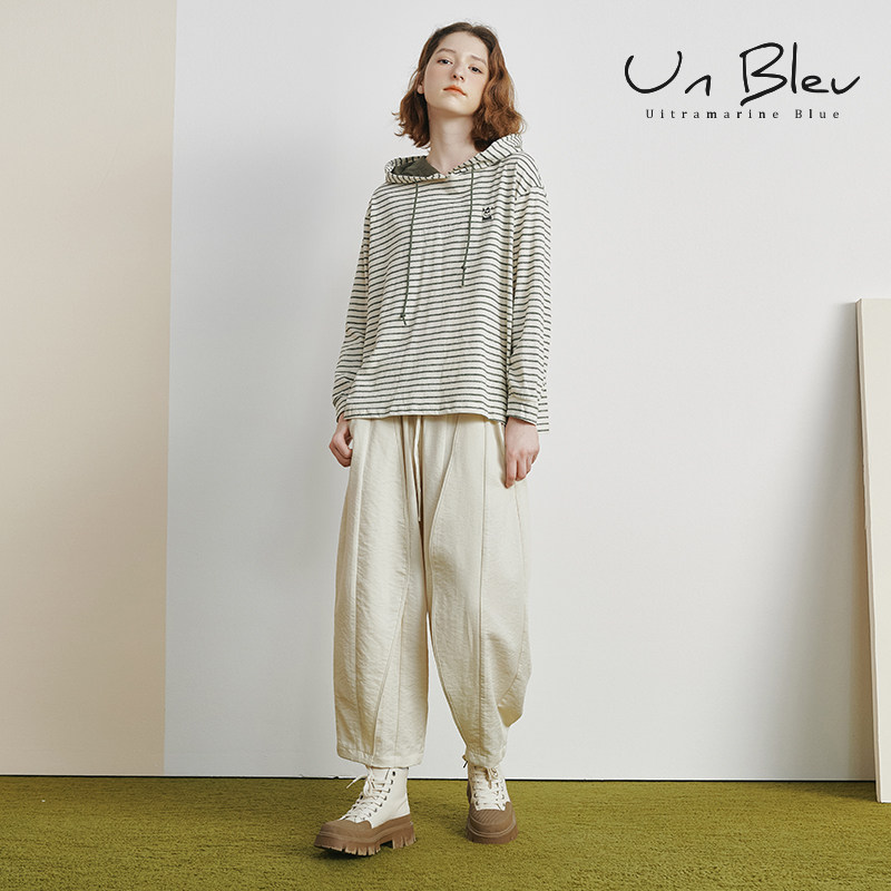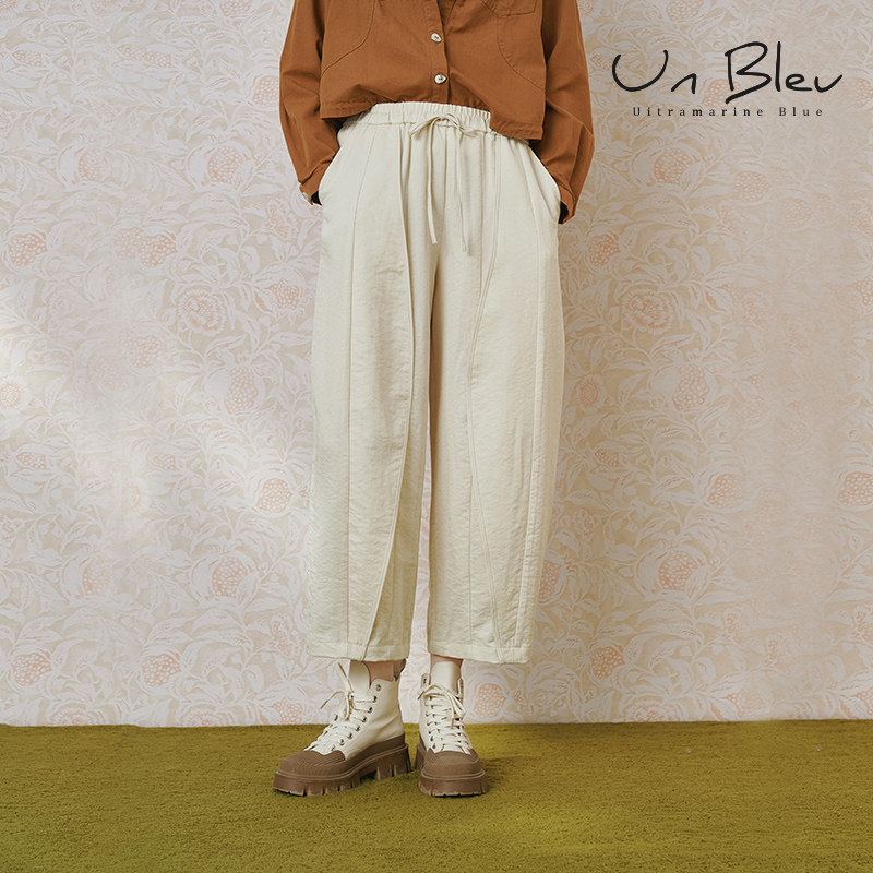 unbleu阔腿休闲裤女2026新款春秋女装宽松休闲直筒全松紧9分裤子