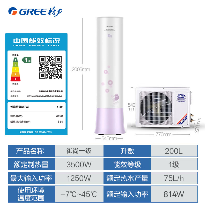 格力 御尚空气能热水器 200L 智能变频 一级能效 低耗节能