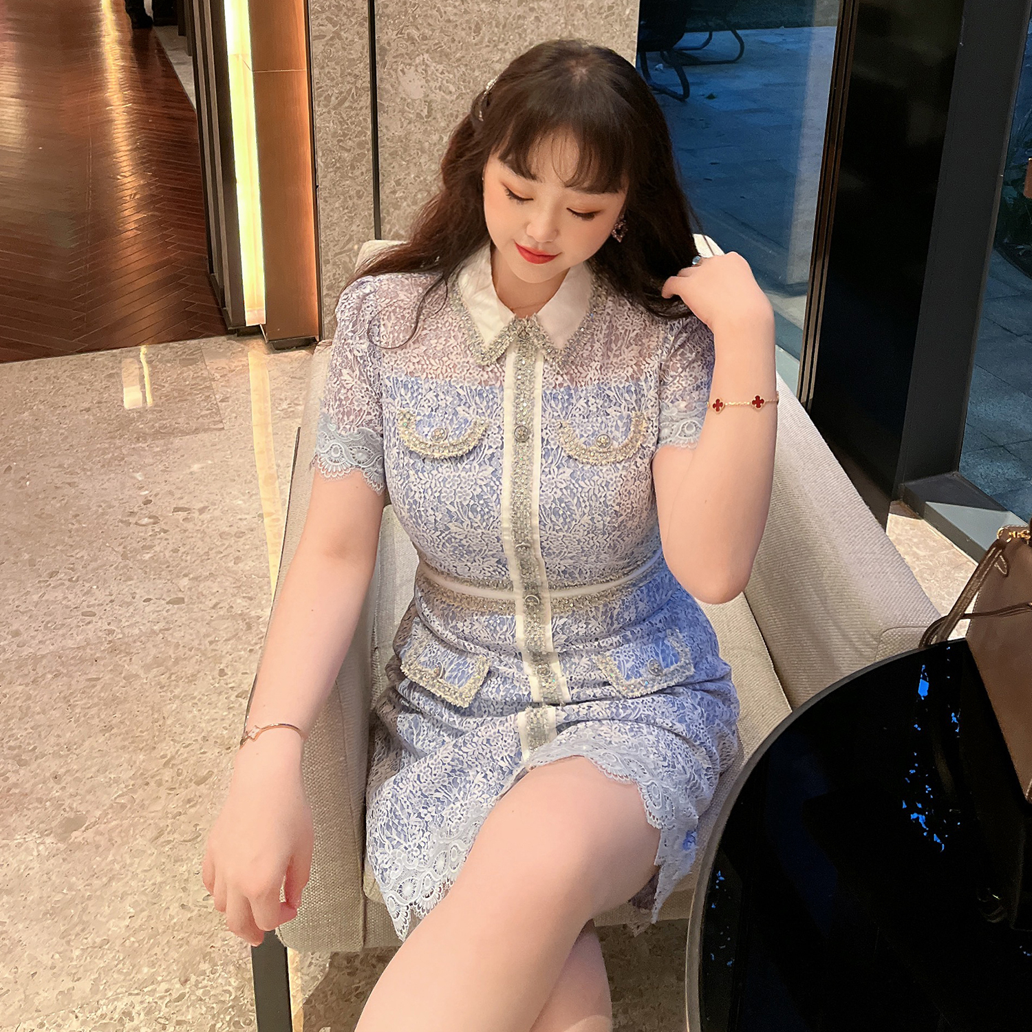 GLEC大码女装2025年新款高级感小香风重工法式气质显瘦蕾丝连衣裙