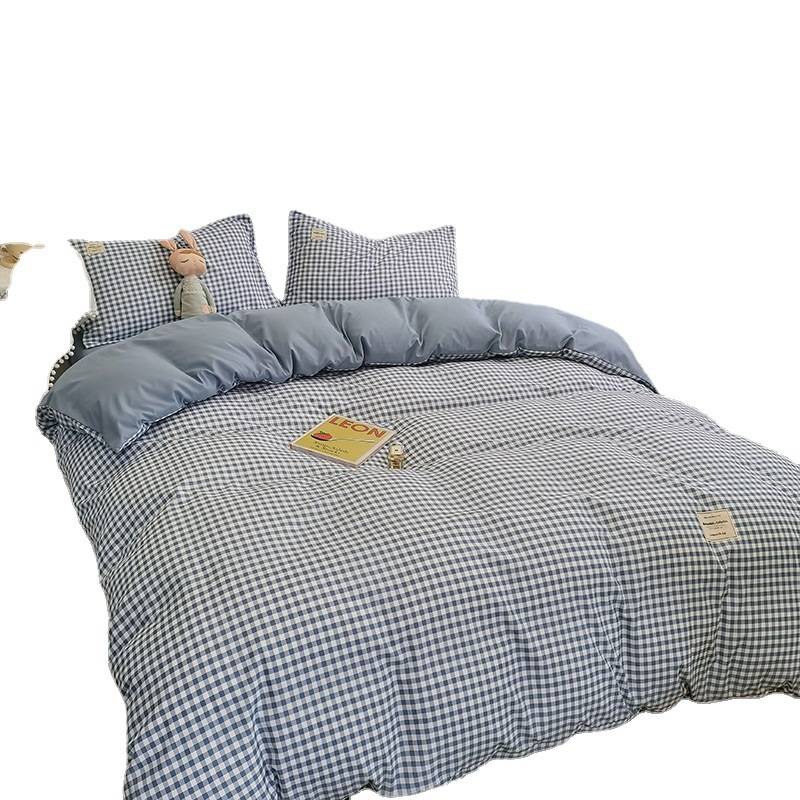 加厚水洗棉四件套纯色格子宿舍三件套床笠款床上用品南通