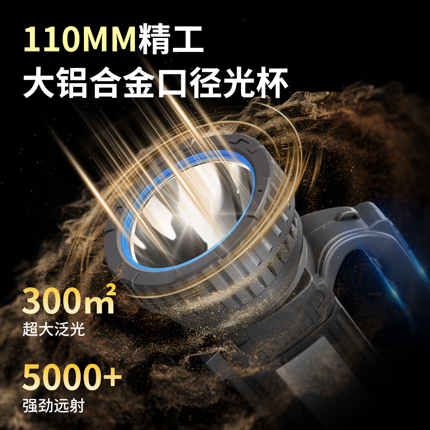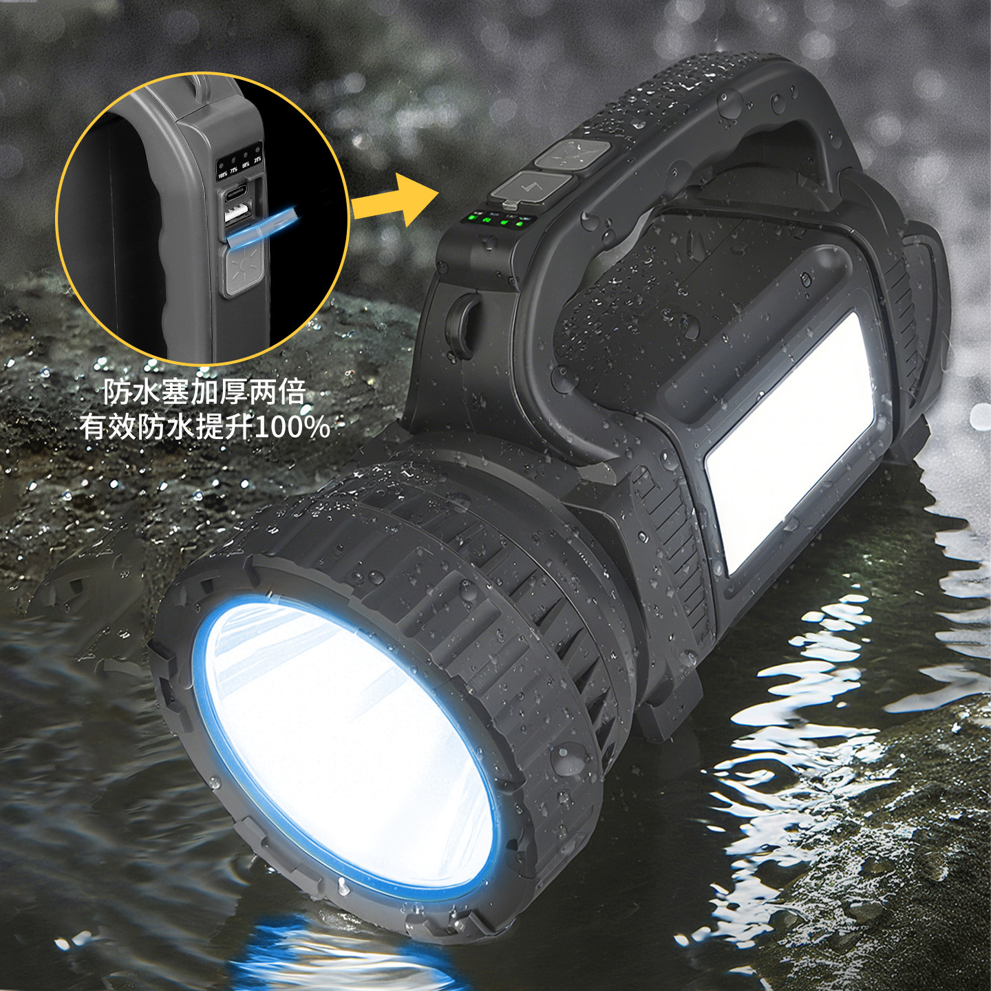 手电筒强光充电超亮远射超长续航大容量太阳能户外照明手提探照灯