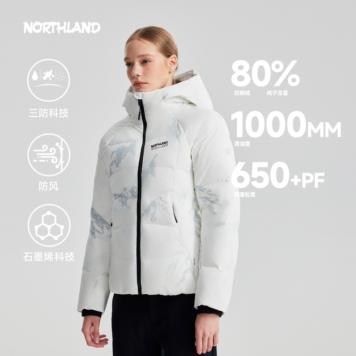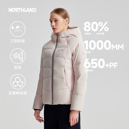诺诗兰24年秋冬鹅绒女士羽绒服户外徒步防风防泼水保暖连帽外套