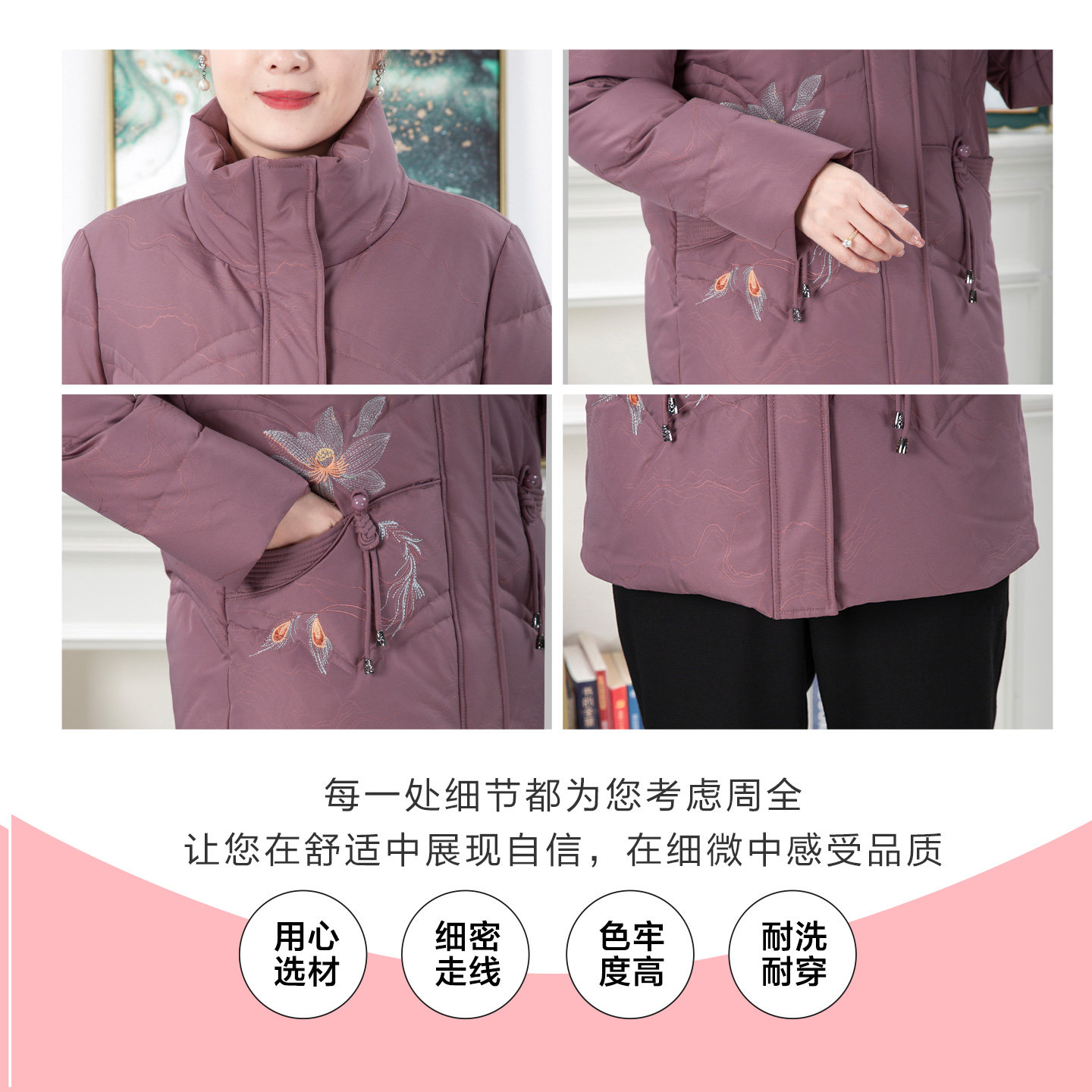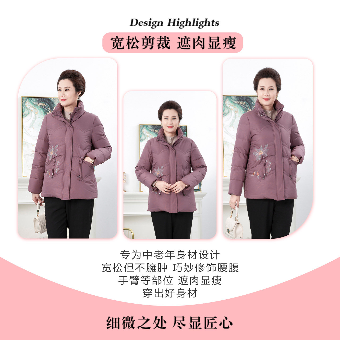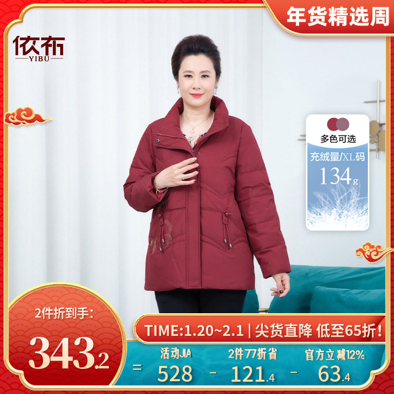 依佈中老年人妈妈装2025冬装新款羽绒服了老太太加厚保暖刺绣外套