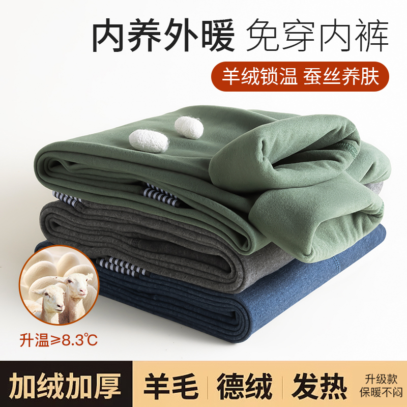 Lee李牌山羊绒蚕丝保暖裤男士加绒加厚秋裤冬季内穿打底裤男款