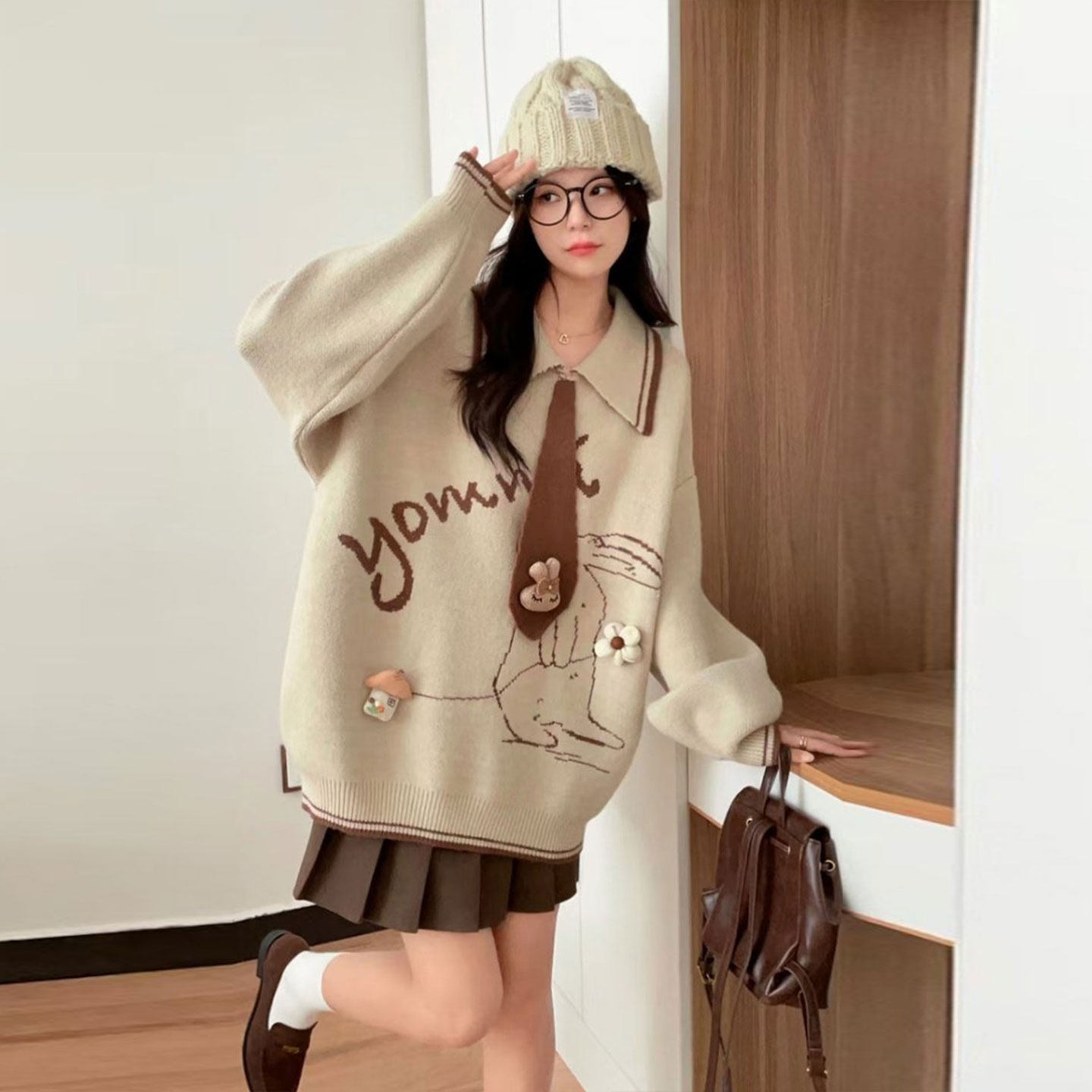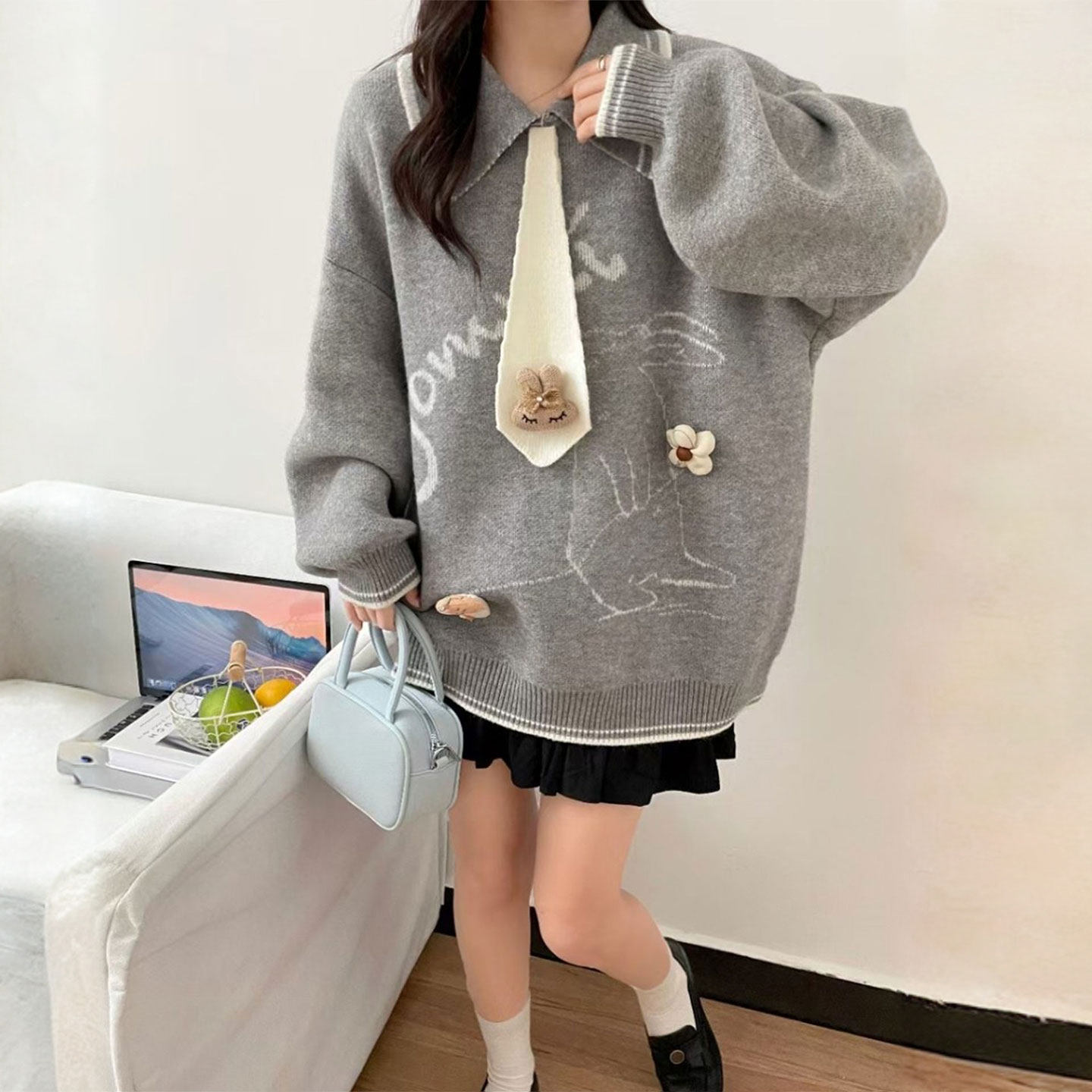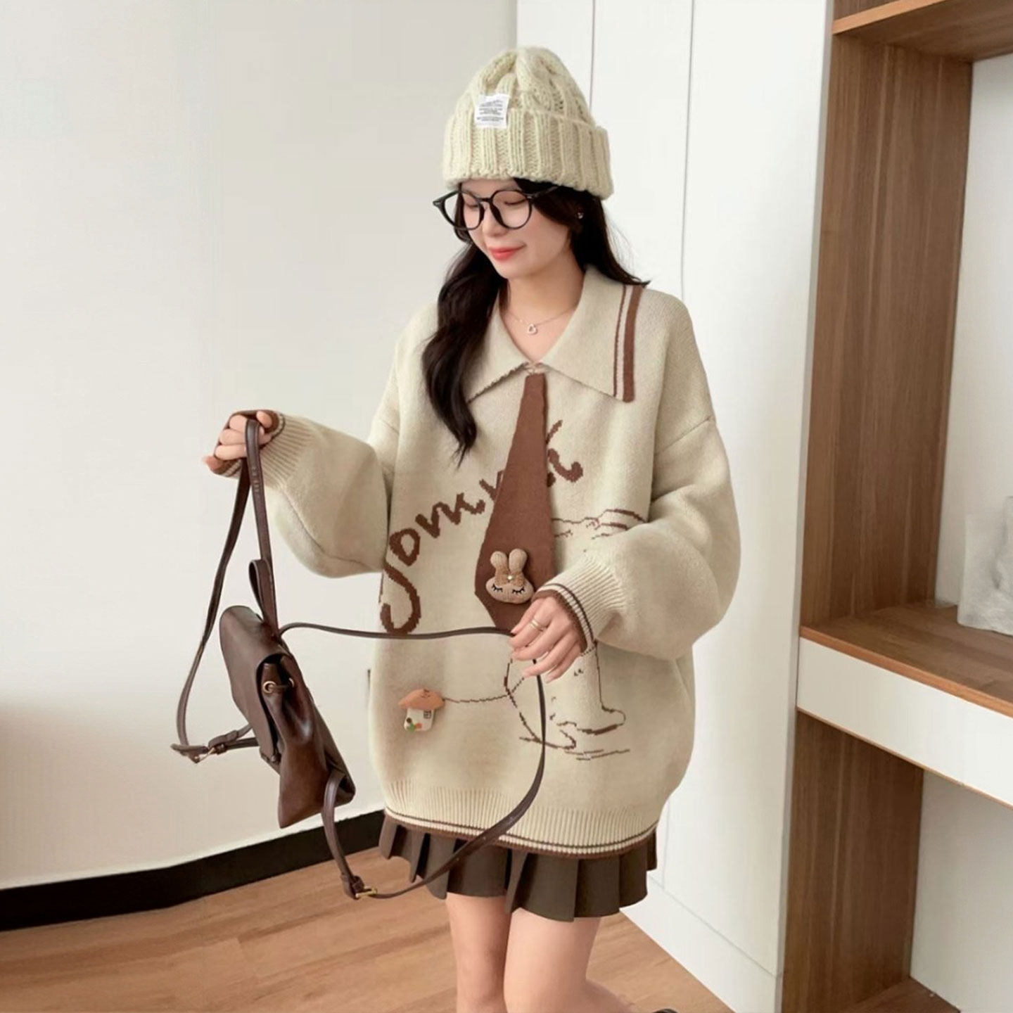 大码女装胖mm学院风甜妹穿搭保暖针织上衣女休闲气质百搭显瘦毛衣