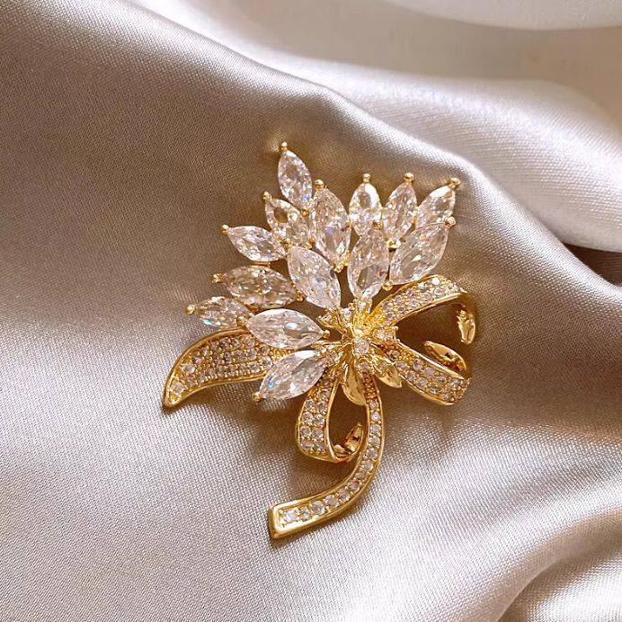 轻奢枫叶胸针高档精致水钻胸花男女西装礼服气质小众高级感配饰潮