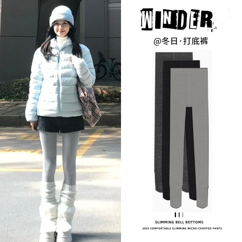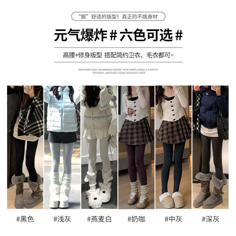 灰色加绒打底裤女外穿冬季加厚保暖秋裤小个子高腰紧身踩脚棉裤袜