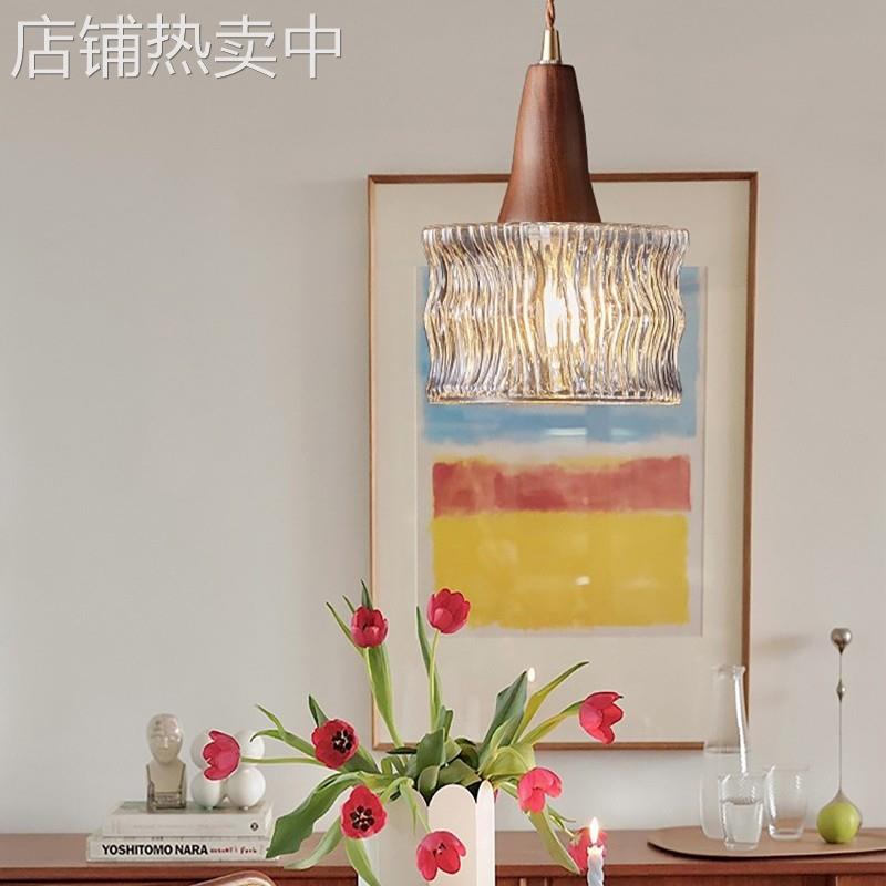中古小吊灯全铜胡桃木卧室床头吊灯简约餐厅美式复古民宿玻璃灯具