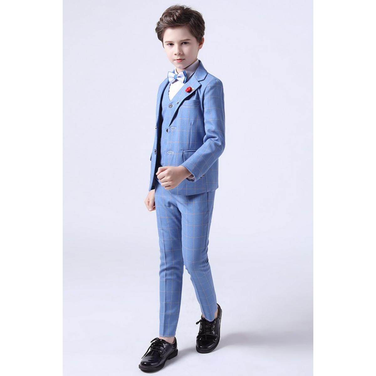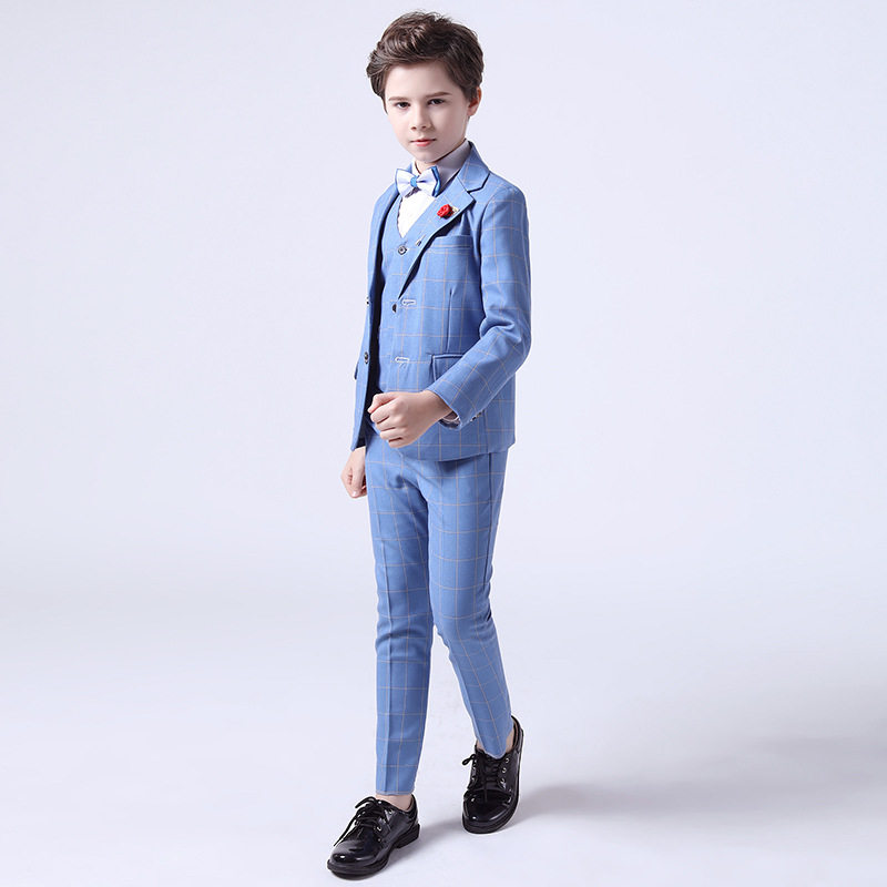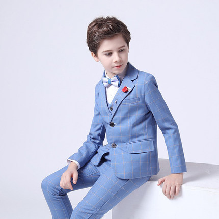 2024韩版儿童格子小西装春秋季新款主持表演花童西装套装三件套男