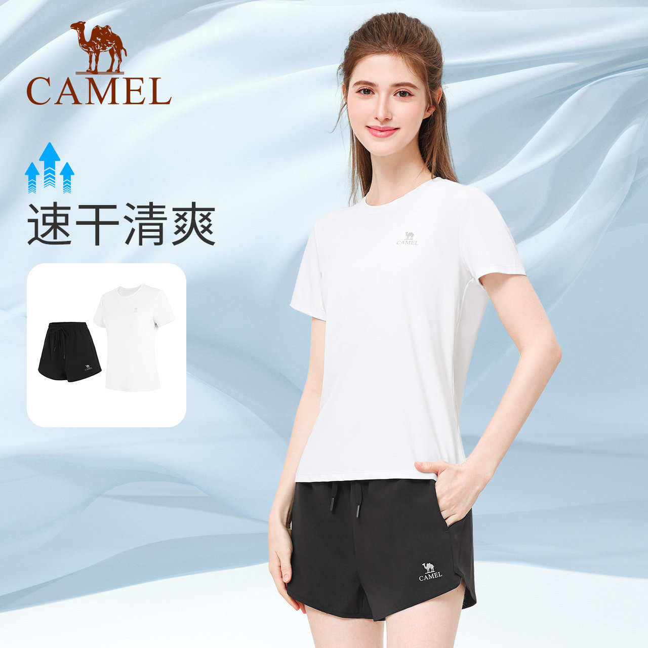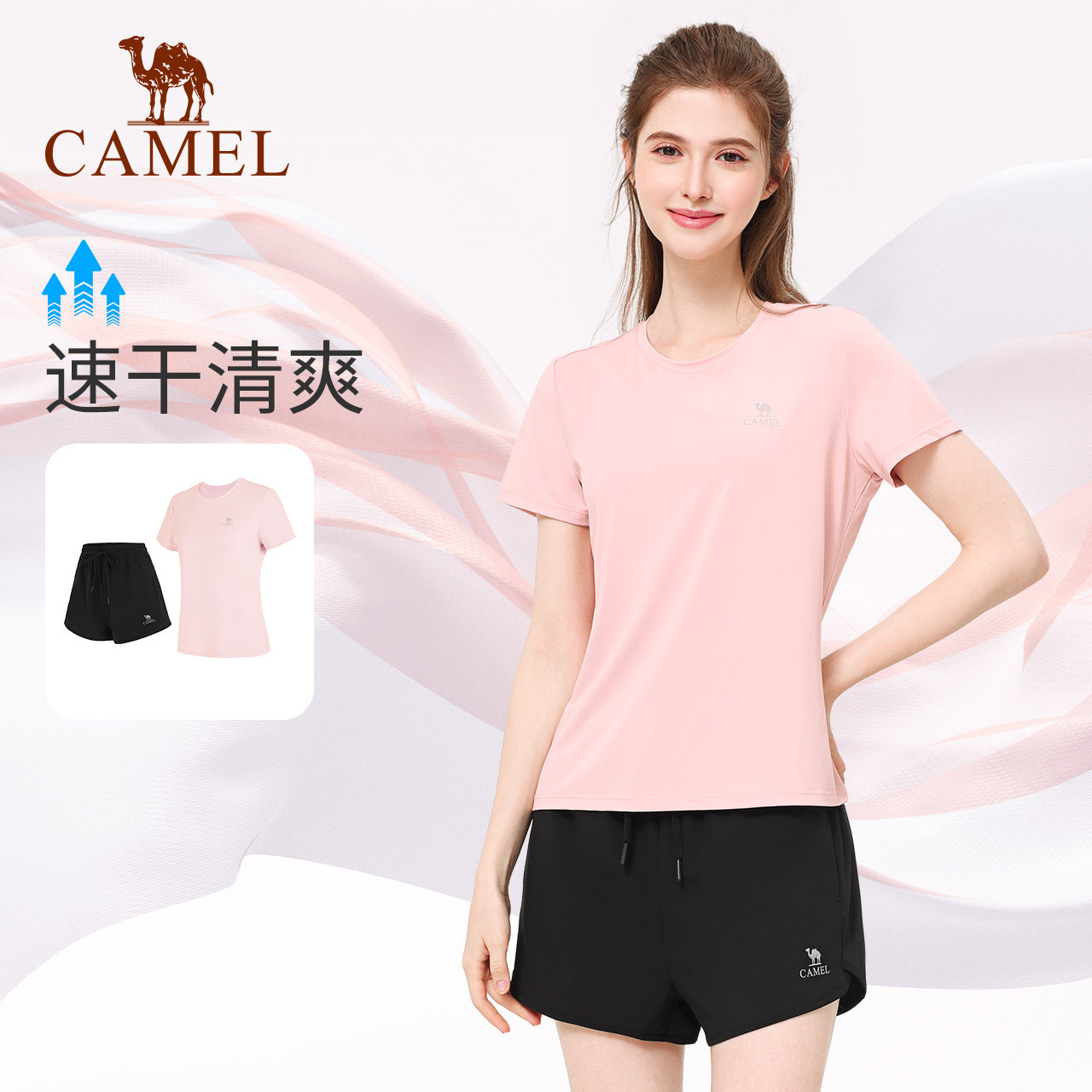 骆驼瑜伽运动套装男女款夏季时尚健身服透气速干训练短袖两件套装
