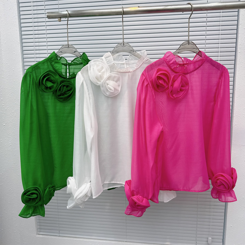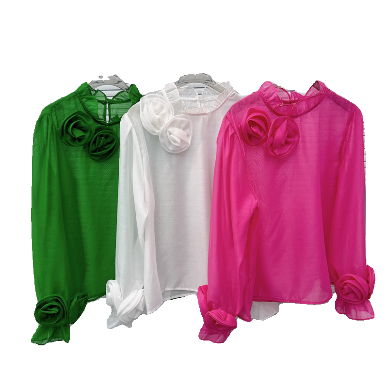 欧货重工定制手工立体花朵上衣女2025新款高端轻奢气质衬衫雪纺衫