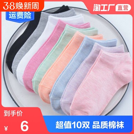 10双袜子女短袜女船袜女士袜子白袜子学生袜夏纯色女袜中筒短筒