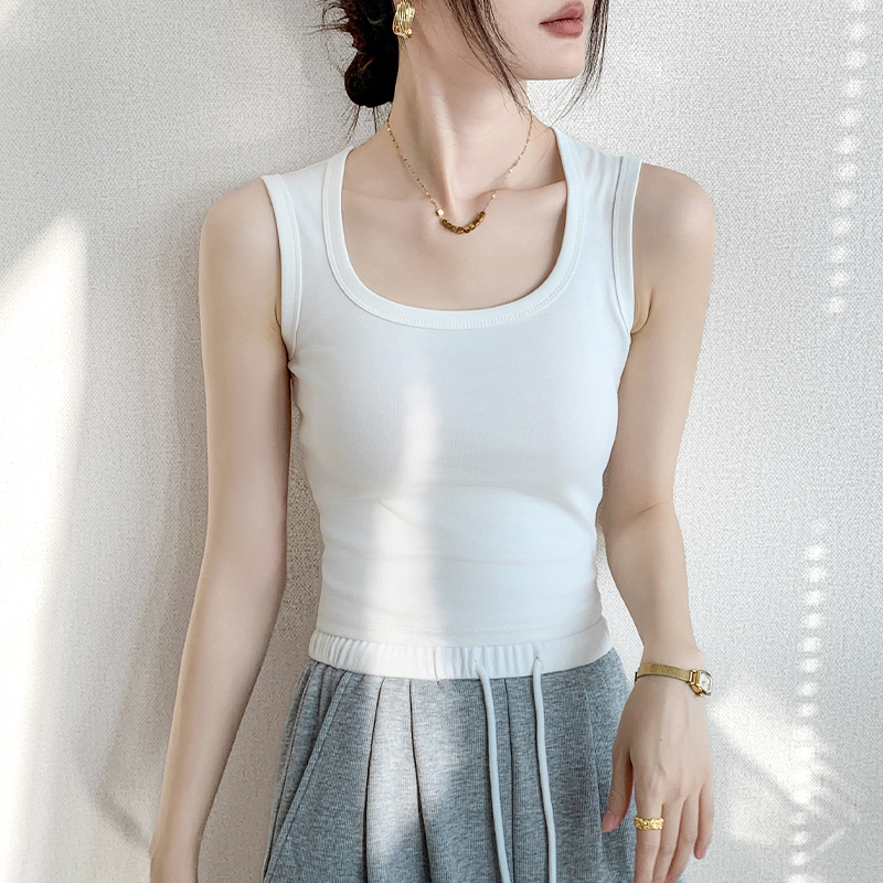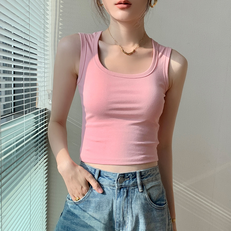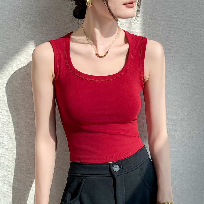 纯棉方领吊带背心女2025夏季新款纯色无袖T恤修身显瘦百搭上衣