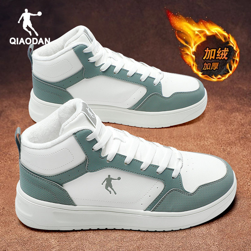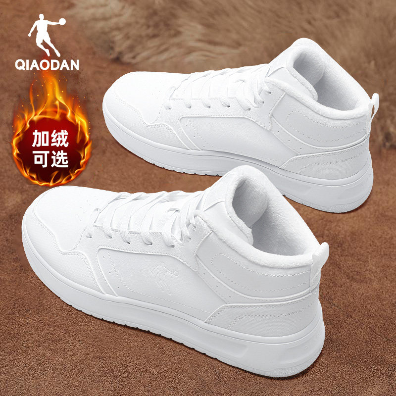 乔丹加绒男鞋高帮板鞋加厚保暖二棉鞋2025冬季新款白色休闲运动鞋