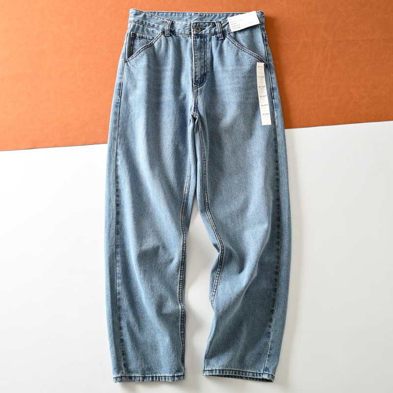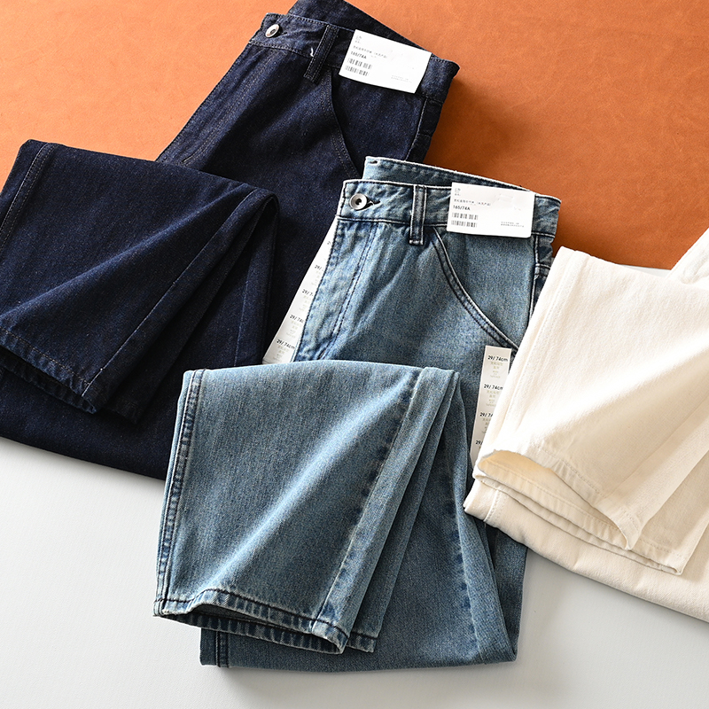 试衣间同款订单外贸日单工厂男士宽松直筒水洗纯棉休闲牛仔裤长裤