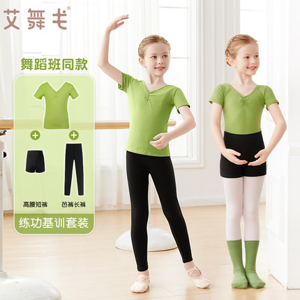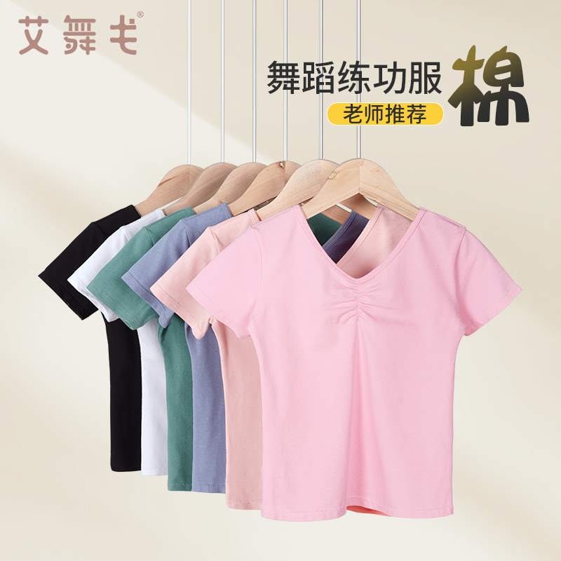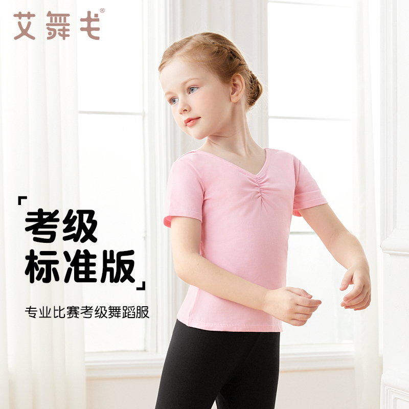 儿童舞蹈服上衣女童中国舞练功服春夏短袖考级服女芭蕾舞基训套装