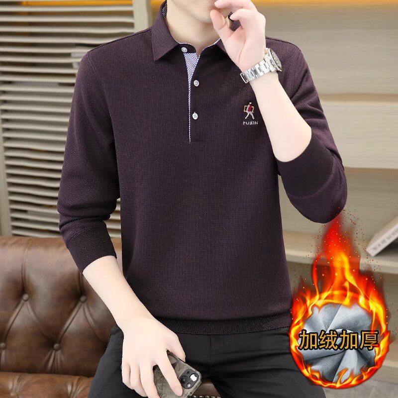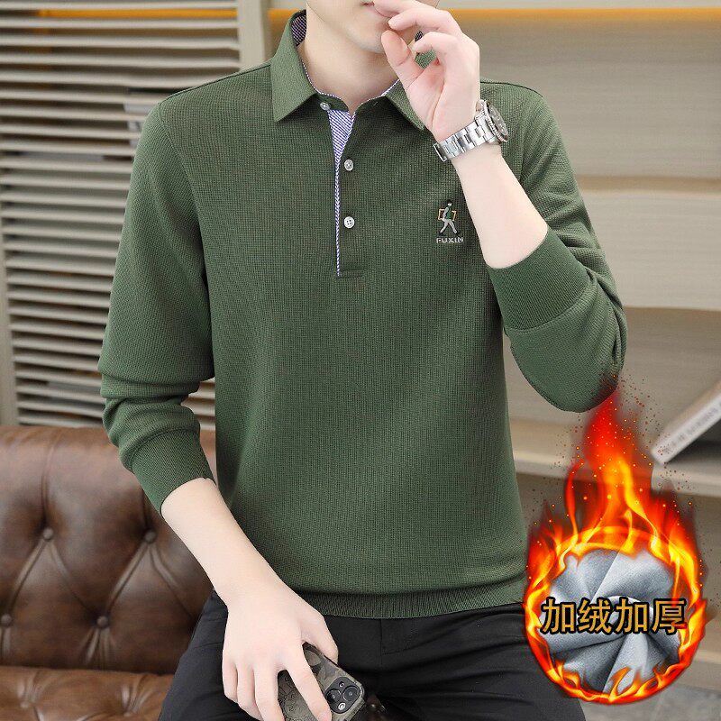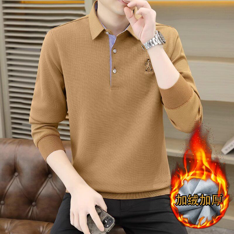 皮尔卡丹长袖Polo衫男士秋冬季加绒厚T恤2025新款翻领保暖打底衫
